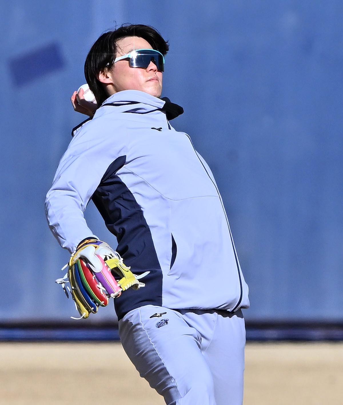 ―キャッチボールで虹色のグローブを使っていた。新調したのか