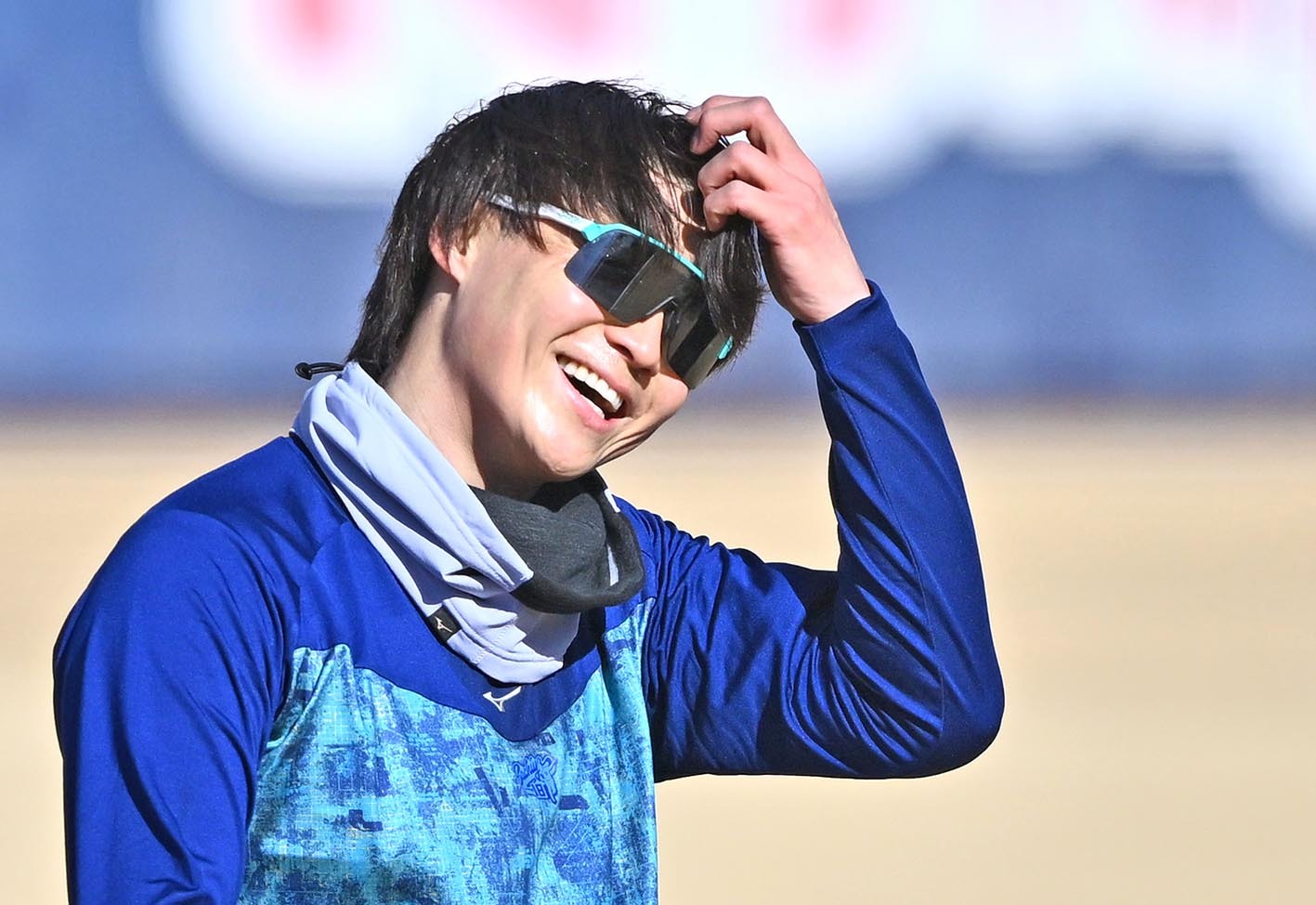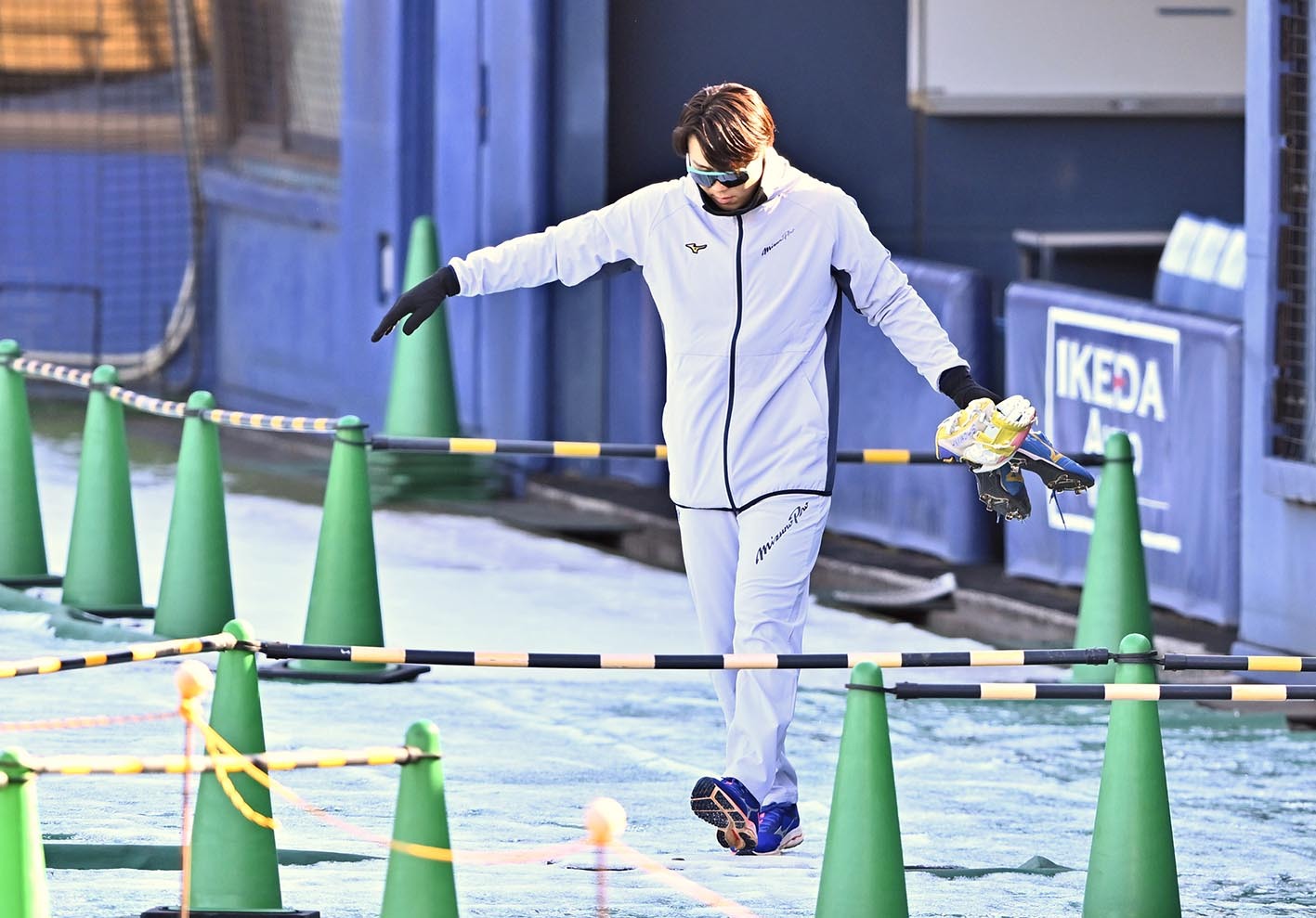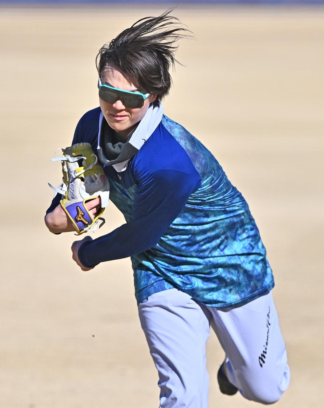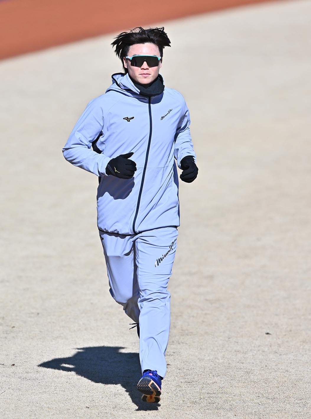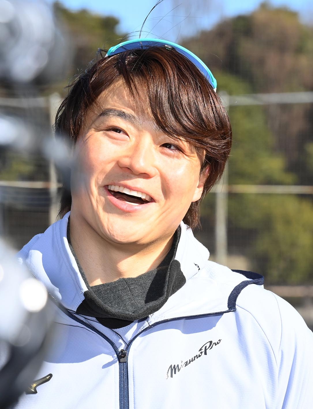 ―昨年の自主トレも青一色のコーディネートだった。きょうのファッションのポイントは