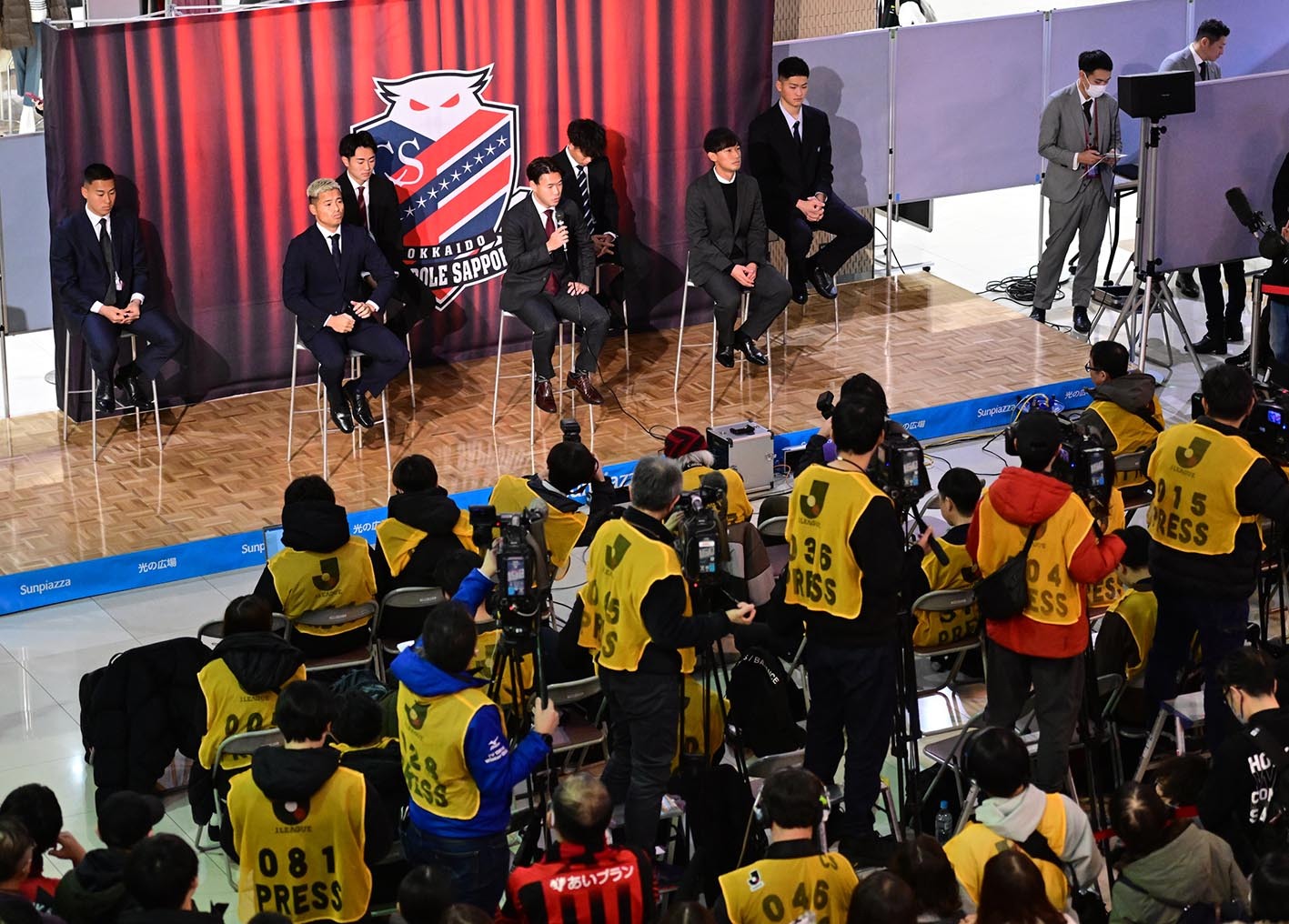 J2北海道コンサドーレ札幌は8日、サンピアザ(札幌市厚別区)で新加入選手の入団会見を行い、J1新潟から10年ぶりに復帰した道産子MF堀米悠斗(31)ら7選手が意気込みを語った。また、鳥栖時代に川井健太新監督(44)の下でプレー経験のあるMF堀米勇輝(33)とは同姓ということもあり、〝なんて呼ばれるか問題〟も勃発し、会場を沸かせた。チームは9日に札幌市内でキックオフイベントを行い、11日に1次キャンプの地・沖縄へ移動する。