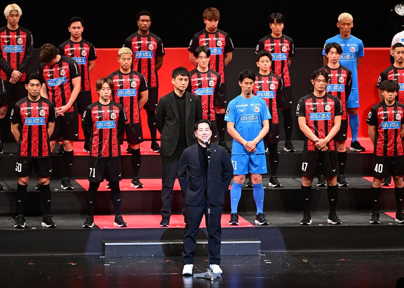 北海道コンサドーレ札幌は9日、新チーム始動前の恒例イベント「キックオフ2026」を札幌文化芸術劇場hitaru(札幌市中央区北1西1)で開催した。イベントでは、新指揮官の川井健太監督(44)が初めてサポーターの前に姿を現し、新ユニホームや新背番号のお披露目も行われた。エースナンバー「9」はブラジル人助っ人FWマリオ・セルジオ(30)に決まり、期待の道産子MF木戸柊摩(23)は昨季まで背負った「31」から「18」に〝昇格〟。昨季限りで引退し、今季から札幌U-18で指導者となる深井一希コーチ(30)がプロ1年目から3年間背負った番号を受け継いでいく。チームは11日に1次キャンプ地の沖縄へ移動。12日から金武町陸上競技場でキャンプをスタートさせる。