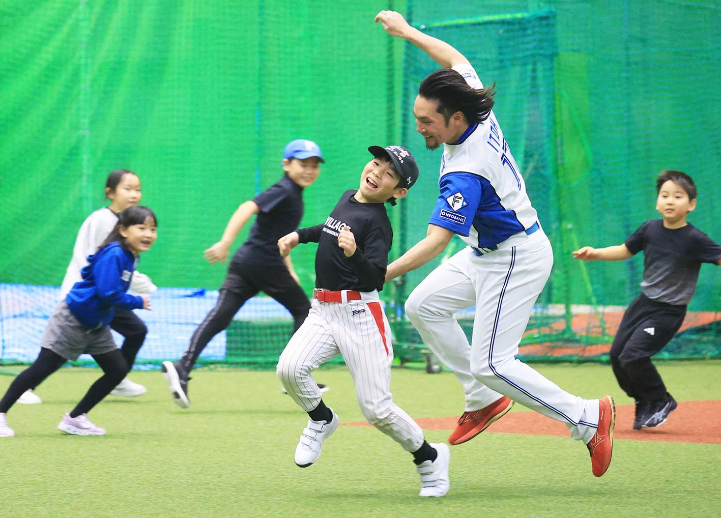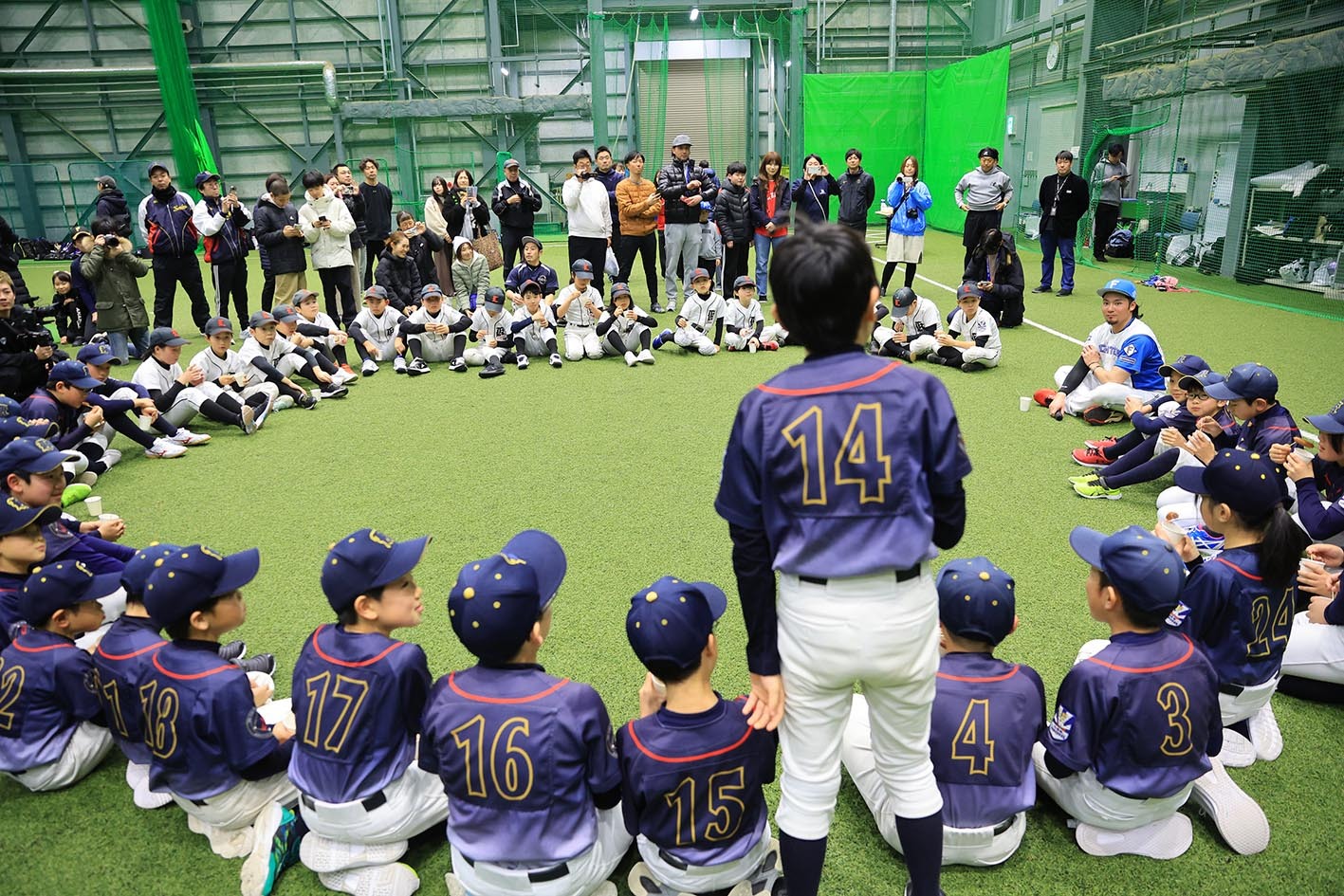 第2部では、上野幌サンダースと小野幌ライオンズに所属する約50人に指導。ストレッチのやり方、変化球の投げ方など丁寧にレクチャーした。このオフは年明けまで約2カ月ほどノースローで調整。この日、自主トレでも20メートルの距離で20、30球程度を投げただけだったというが、マウンドに立って子どもたちとの〝ガチ対決〟に応じ、大いに盛り上げた。