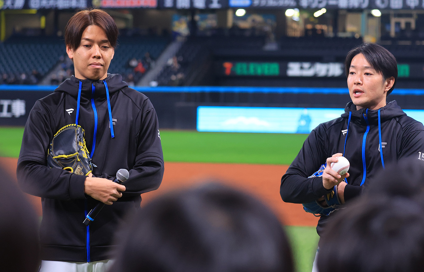 玉井「あんなに(4人)子どもがいて、野球もやって、(子どもを)送ってから(球場に)来たとか。シーズン中とかも結構、朝早くから起きて、すごいそれは尊敬しかない。野球もすごいですし、いまだに150(キロ)中盤くらい投げますし、うらやましいです。あんな球、投げてみたい。マジすごいです。直してほしいところは、だからやっぱこう…なんだろうな。ロッカーとかで僕が責められている時とか、助け船を出してくださいって感じで振ったりするんですけど、われ関せずみたいな…。見て楽しんでいるとか、大事な場面で一言、横やりでポンと僕のマイナスなことを言う(笑)。あのトーンで言われると結構、傷つきますよね。杉浦さんに言われるっていう。ミヤさん(宮西)とかに言われても、そういう人なので。杉浦さんはそうじゃないので、スパッと言われると、苦しい時があります(笑)」