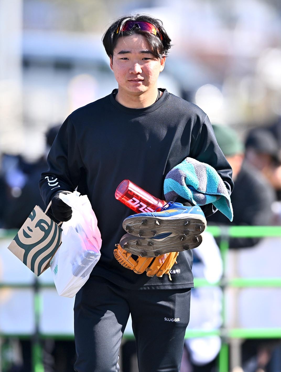 バットも振り込んできた。「順調に追い込めているなって感じはしますけど。今ちょっと落とせって言われていて、少し飛ばしすぎたので。落とすのも、もともとの予定にあったんですけど、にしても自分としては全然だったんですけど、手の方が付いていかなくて。逆に守備(の練習量を)を上げています」。この日もグラウンドでノックを受けるなど、精力的に汗を流している。