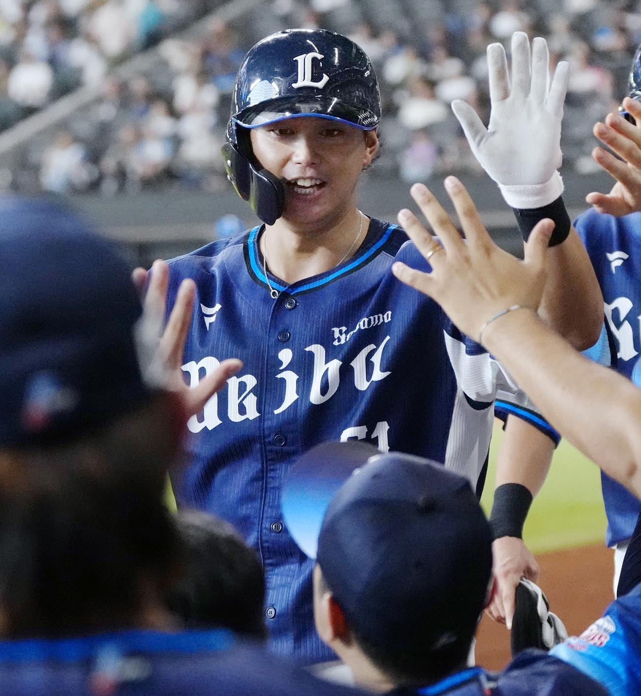 2025年9月15日、日本ハム戦で本塁打を放った西武・西川=共同