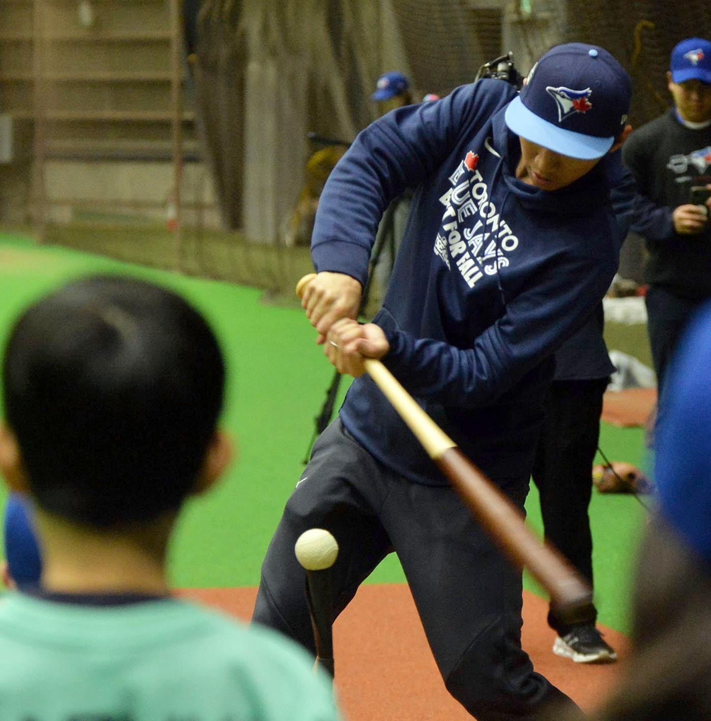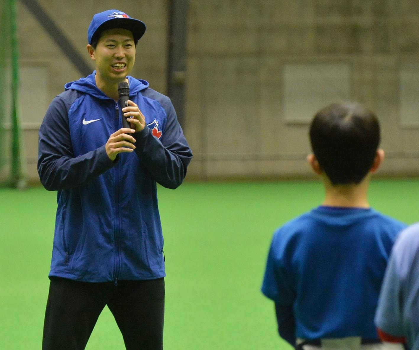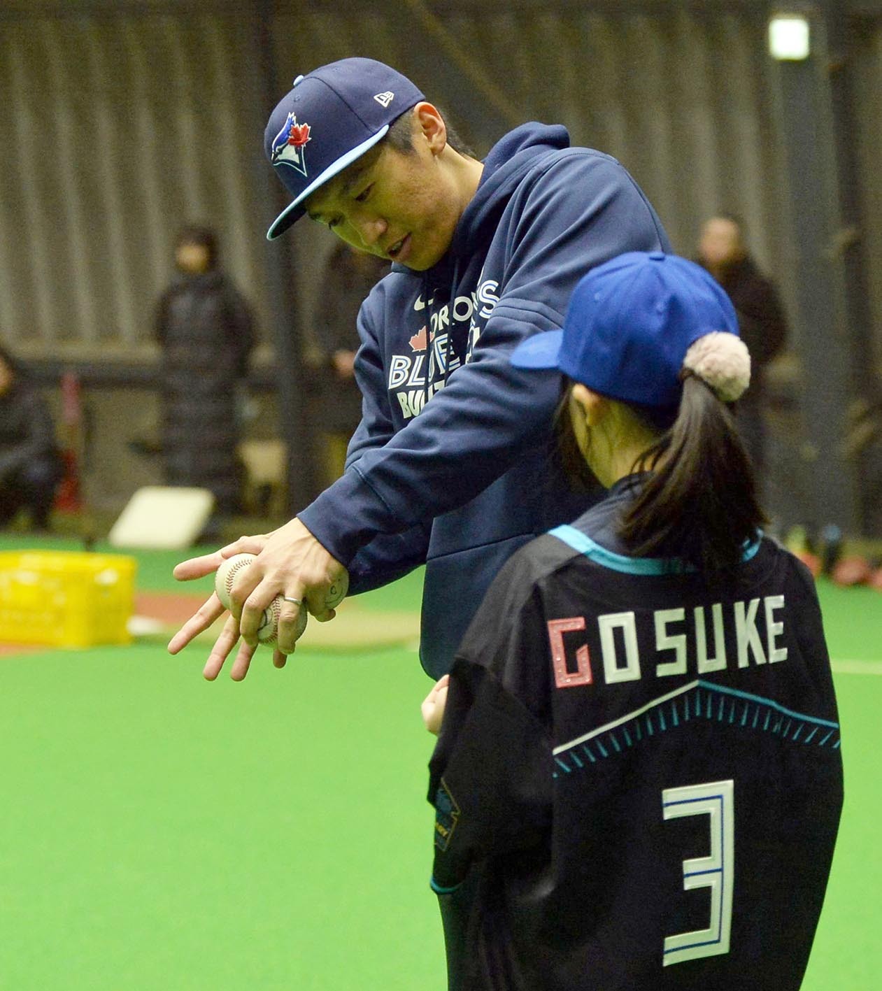 MLBトロント・ブルージェイズの戦略担当を務める元日本ハムの加藤豪将さん(31)が17日、札幌市内にある日本ハムの屋内練習場でベースボールクリニックを開催した。今夏にカナダ独立リーグに挑戦した北大大学院生の大澤楽汰(るんた)さんをゲストコーチに迎え、小学5、6年生33人に日米の経験を踏まえた技術などを惜しみなく伝授した。
