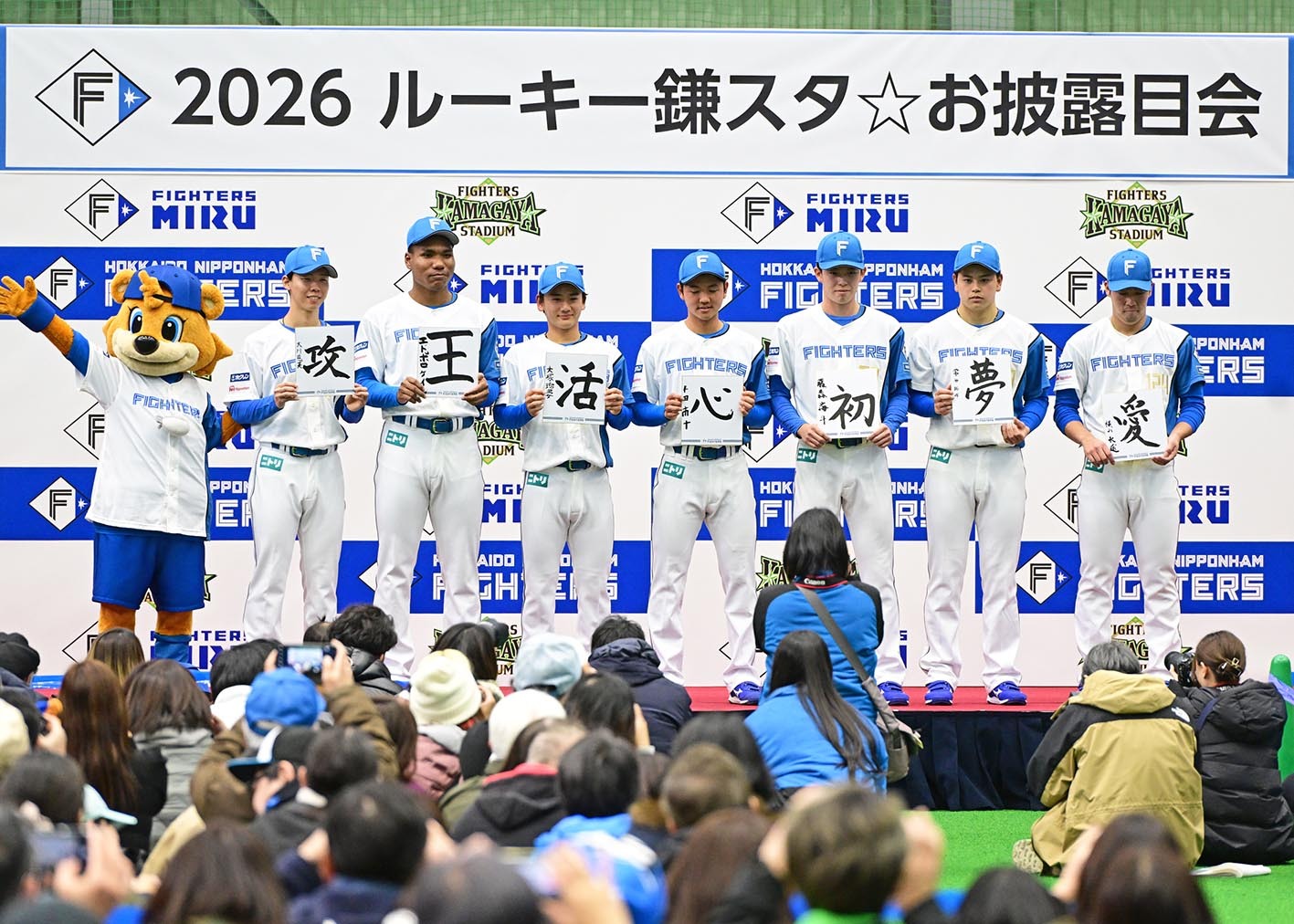 日本ハムの新人7選手が18日、千葉・鎌ケ谷の室内練習場で行われた「2026ルーキー鎌スタ☆お披露目会」に参加し、1085人のファンと触れ合った。ドラフト1位・大川慈英投手(22)の一問一答は以下の通り。
