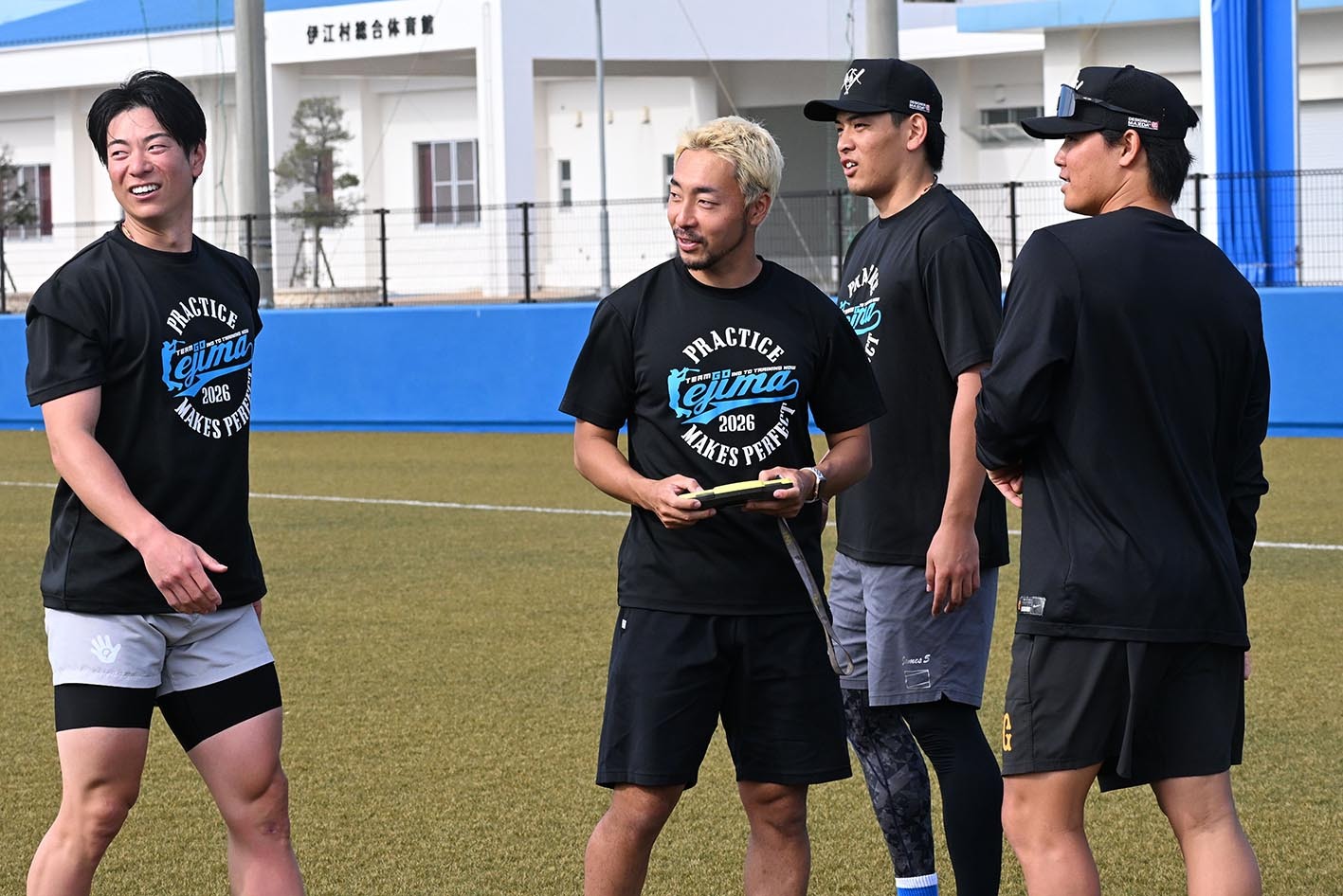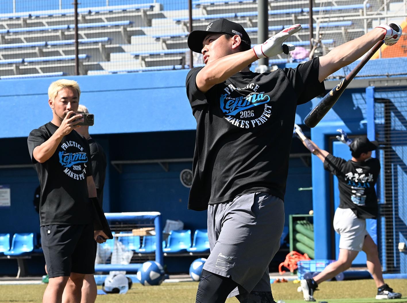 今季の『松本賞』のノルマは、昨年同様に「25本塁打」。茂田井トレーナーには、日本ハムOBで伊江島自主トレに参加していた杉谷拳士さんから託された使命がある。「25(本塁打)打ってうれしいですけど、野村を見るとなった時に拳士さんが3割30本100打点をエスコンの球場でずっと打てるバッターにしたいから任せるって言われて。お願いされたのをまだ1個も達成できていないんです。今のNPBで3割30本100打点打てば、球界ナンバーワンじゃないですか。それを絶対、無理だなと言えないバッターだと思うので」。背番号5には、トップに立つことを信じて支えてくれる人たちがいる。