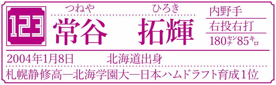 《2026ファイターズ新人紹介》⑥常谷拓輝 目標はあの〝主砲〟「優しくしていただいています」【道スポオリジナル名鑑】