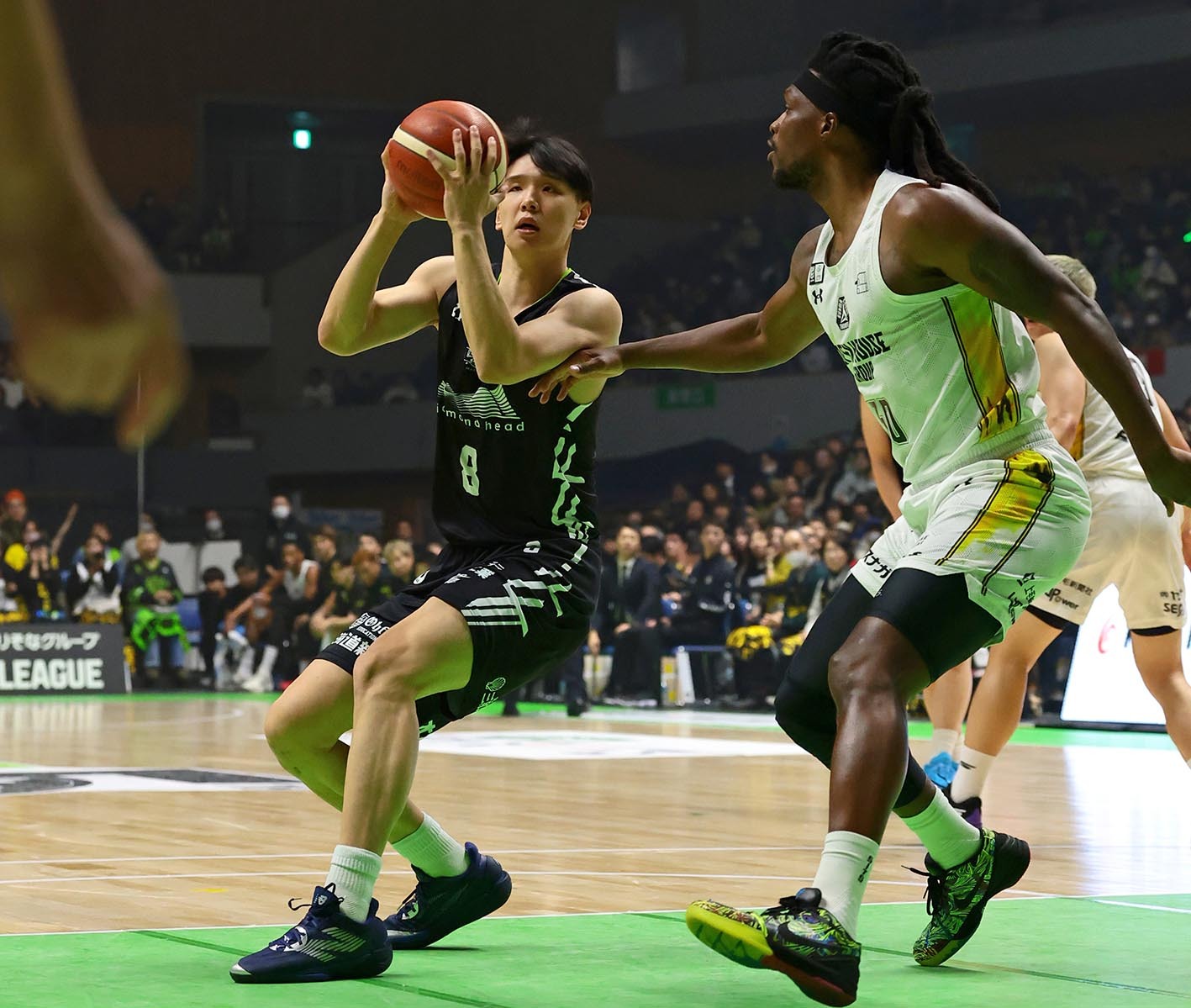 身長200センチの和製ビッグマンがコートで存在感を示した。第1クオーター(Q)残り6分31秒で、C/PFジョン・ハーラー(26)に代わってコートに投入されると、1分後に相手ペイントエリア内で体勢を崩しながら左手1本でゴールにねじ込み、軽く手をたたいた。得点は合計3得点に留まったが「チーム全体で、自分を含めて出てる全員がハッスルして戦い抜いて、こういう接戦を勝ち切れたのは本当に大きかった」。ベンチの後ろで戦況を見つめていたジョーンズとゲーム後にしっかりと勝利のハイタッチを交わした。
