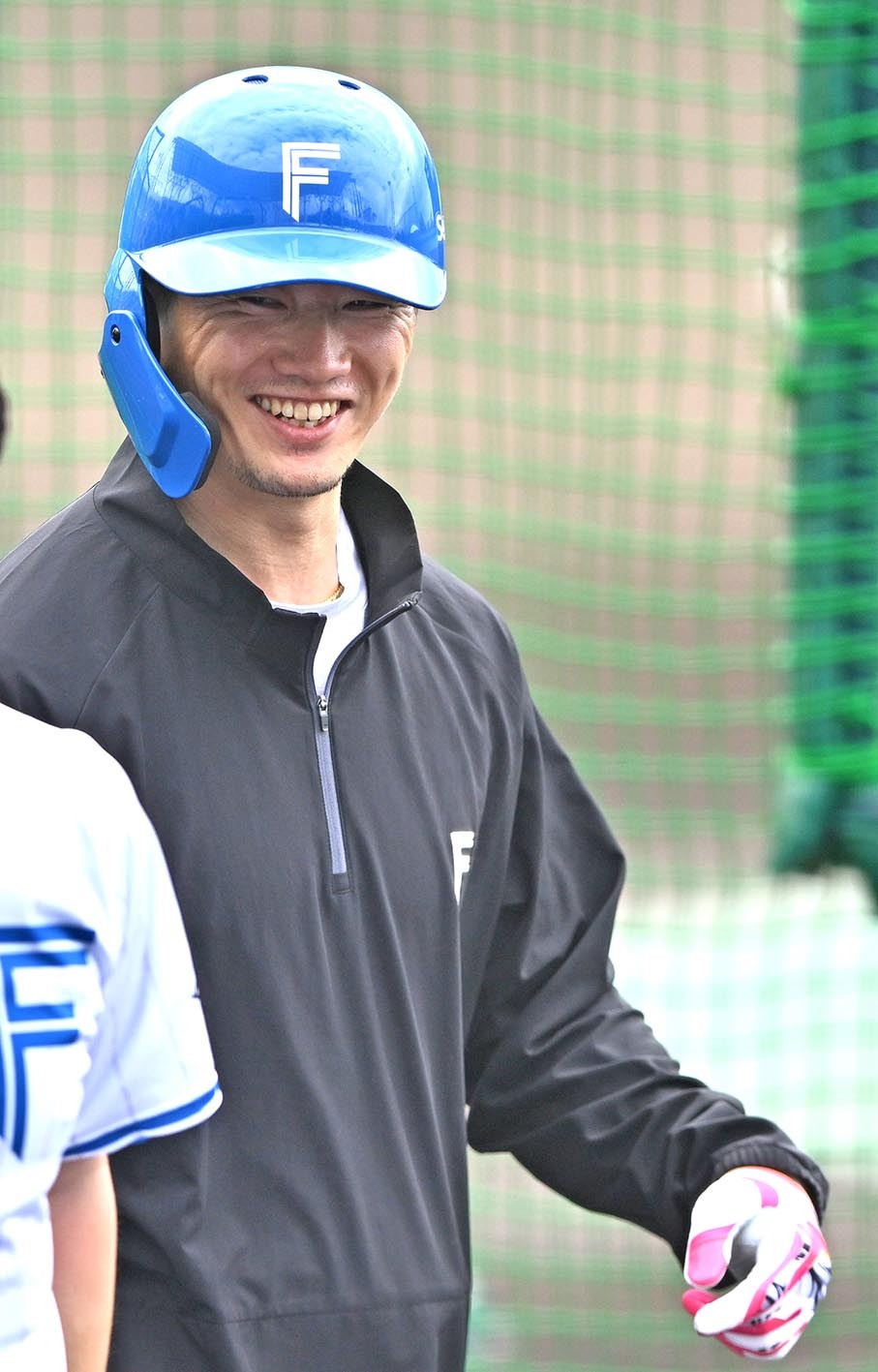再び戻ってきた名護の地。前日31日には、新庄監督が主催する花火大会を観賞し「すごいなって思った」。気持ちが高ぶって寝られなかったことは「全然なかった」と万全の状態でキャンプインを迎えることができた。ウオーミングアップ前には、気心知れた同学年の加藤貴、玉井らと交流。「そこに島本も(山崎)福也もいて、あそこだけ加齢臭しそう(笑)」と、うれしそうだった 。