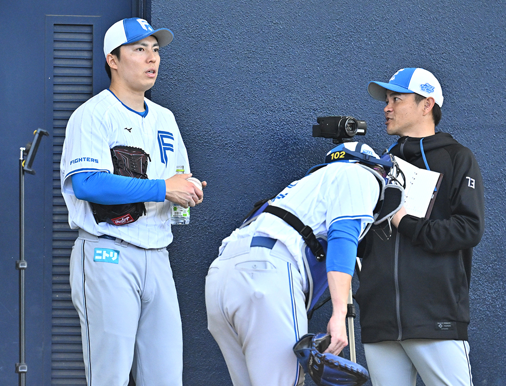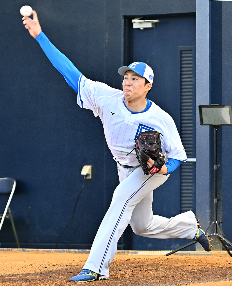 日本ハムの田中正義投手(31)が4日、沖縄・名護キャンプで2度目のブルペン入り。新庄監督が名前を出すなど抜群の仕上がりを見せており、3度のセーブ王に輝いた実績を持つ武田久投手コーチ(47)も絶賛した。投球練習後、取材に応じた一問一答と同コーチのコメントは以下の通り。