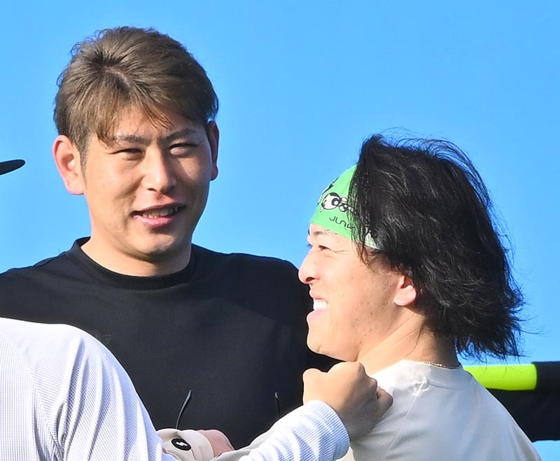 生田目「直してほしいところは、優しすぎるところ。優しすぎて損するよって思う。加藤さん、本当に優しすぎるから。いろんな面で。優しすぎるのはやめた方がいい。誰にでもめっちゃ気を使ってくれるし、話しかけてくれるから。加藤さんが絡むと、みんなが絡んでくれるから、1軍に来たばっかりの若い子とかは、みんなうれしいんじゃないですか。チームの中心ですし。たまに加藤さんに『優しすぎやろ、そんなのほっといて良いやろ』って言うもん。みんなに優しいから、いい、いい、ほっとけば良いじゃんって言っても、あの人は優しいから、気遣いもめっちゃできるし、気配り目配りが素晴らしくて、もういいんじゃない? っていう時もあります。でも、めっちゃ優しいところが好き。僕には一生、優しくしてください(笑)。毎回、『ナバ、何してんの?』ってメシに誘ってくれるし、加藤賞もくれたし、とにかく優しいです。(去年の)キャンプ中はずっと一緒にいました。一緒にいて楽ですね。2人で飲みに行ったこともあるんですよ。すごくないですか? 加藤さんと2人で行けるぐらいのレベルまで俺も来たんだなと思って、ちょっとうれしかった(笑)。『誰か誘う? 別に誰でも良いし、2人でもいいよ』って言われたから、えっ、じゃあ2人で行きましょうって。面白かったなー。おもろいけど、お互い普通にまともな会話をします。お互いふざけ合う時もありますけど、意外と真面目な話ばっかりしていましたね。加藤さん、頭良いし」