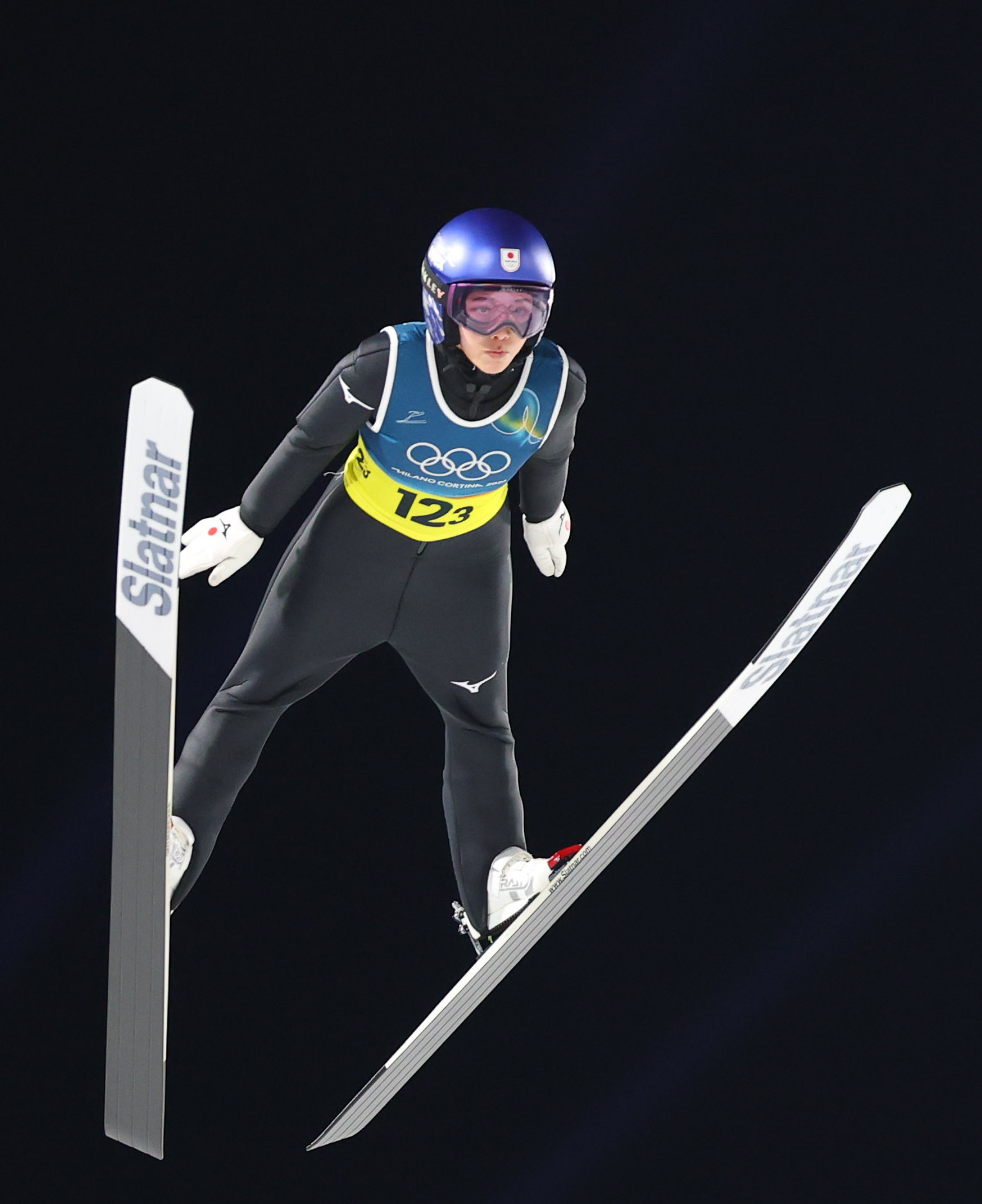 アンカーの二階堂につなぐ3番手を担った。個人ノーマルヒルでは13位に終わったが、この日は2回とも強い追い風が吹く難しい状況でK点(98メートル)付近にまとめ「個人戦よりも、練習よりもいいジャンプが飛べた」。試合後、北京五輪の混合団体メンバーで今回は応援に回った伊藤(土屋ホーム)に抱きかかえられると、涙があふれ出た。