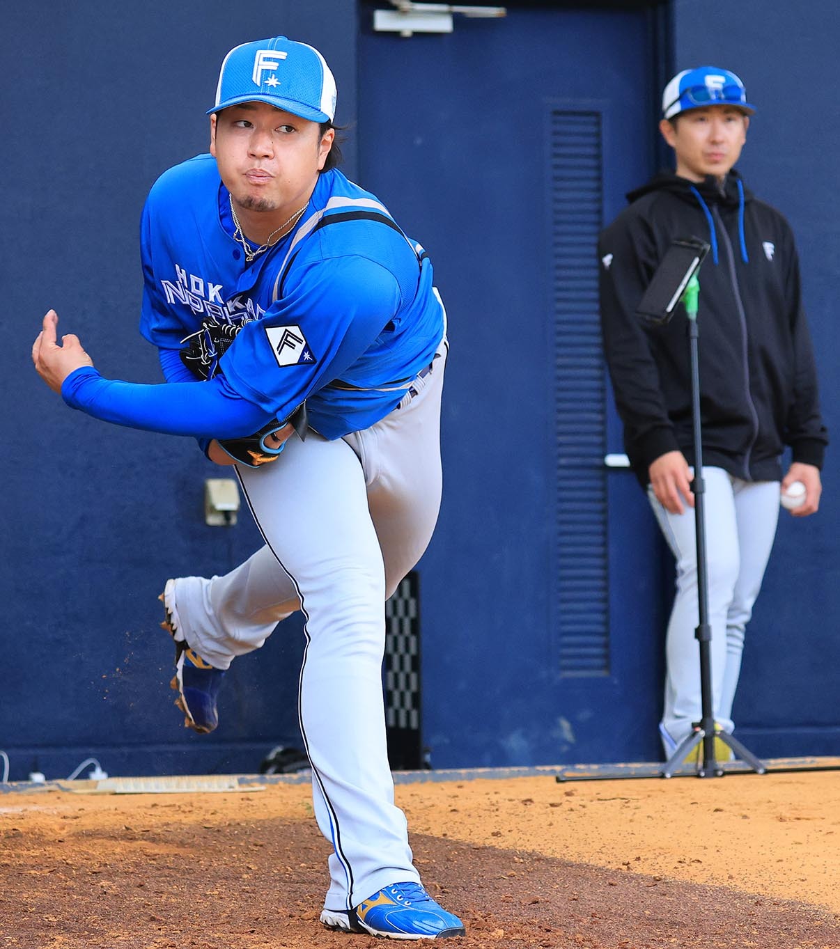 「まずはラインの引き方。僕の場合は(右肩が内側に)入る。『いい状態の時はそれでしっかり投げられるけど、悪くなった時は(右肩が)入りすぎていると引っかけたり、抜けたりすると思うから、しっかり右肩でラインを出しながら投げていった方がいい』とアドバイスをいただいたので、きょうはそれをメインに(意識して)投げました」
