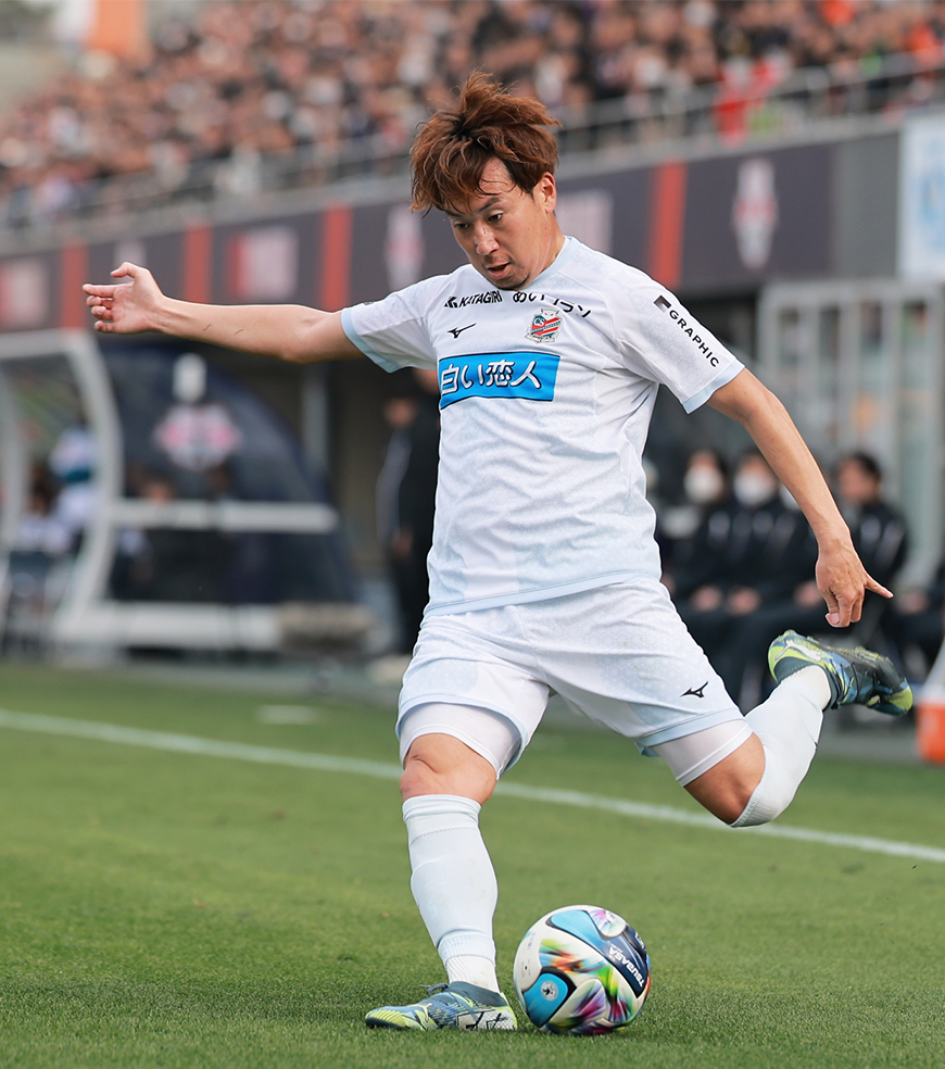 帰ってきた背番号5が、全く色あせない左足で最後まで見応えのある試合をつくり出した。以前は3バックの左CBが主戦場だったが、川井新体制では1列前のボランチに挑戦。開幕戦では途中出場だったが、この日は90分間最後までボールを追いかけ、試合終了のホイッスルが鳴るとピッチに倒れ込んだ。「練習試合でも90分やってなかったですし、ものすごく疲れましたけど、試合に出る、プレーするっていうところは改めてサッカーが楽しいなと思えた」。