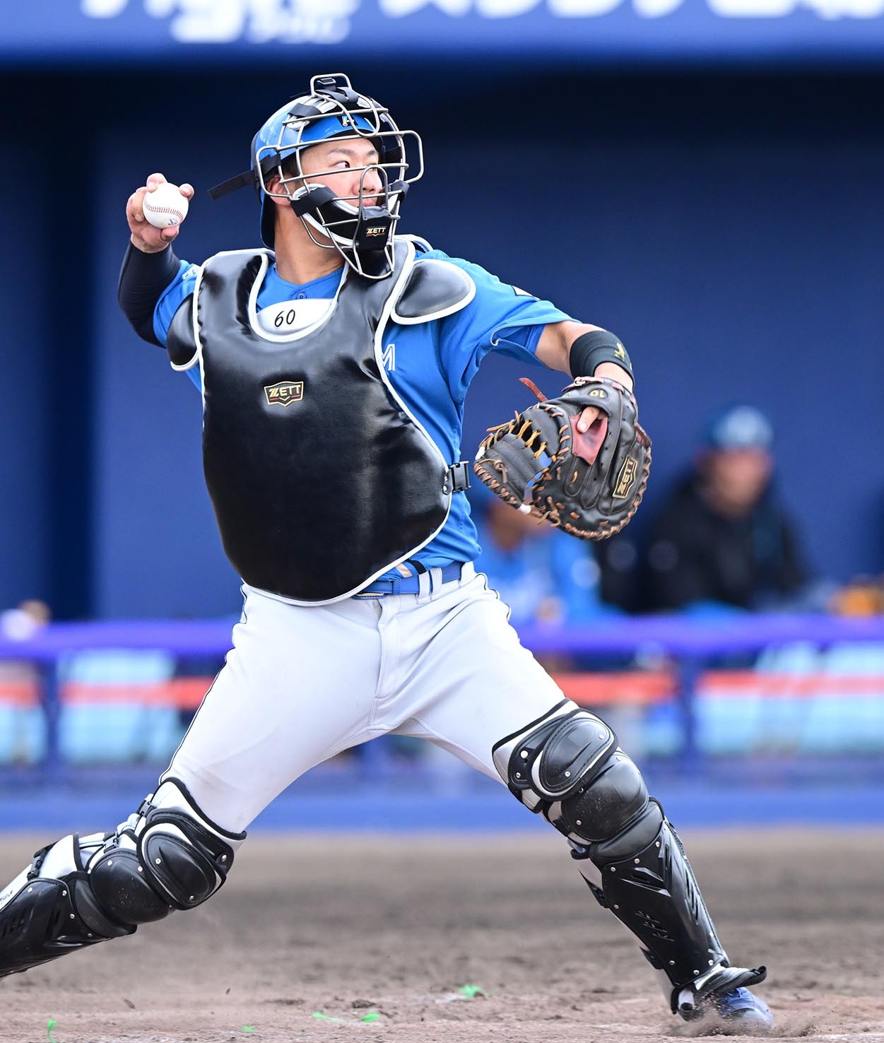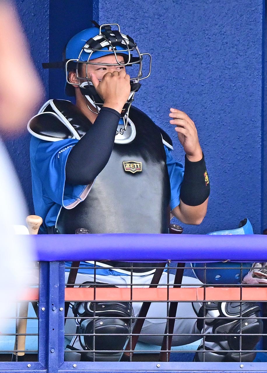 「ワンバウンドを止めたり、ボールを捕ったりっていうのは、自分の中では苦手ではないので、そこらへんの感覚は全然、大丈夫なんですけど、何よりも対バッターに対しての配球だったり、ピッチャーとの呼吸ってところは、どうしても実線で受けていかないとつかんでいけないところだと思うので、きょうも結構、ヒット打たれたりとかありましたけど、自分としてもそこは反省しながら、さらに思い出していきながらやらないと、ピッチャーに迷惑がかかっちゃうので、そこらへんは自分でも、もう一回、映像を見直したりして進めていきたいなと思います」
