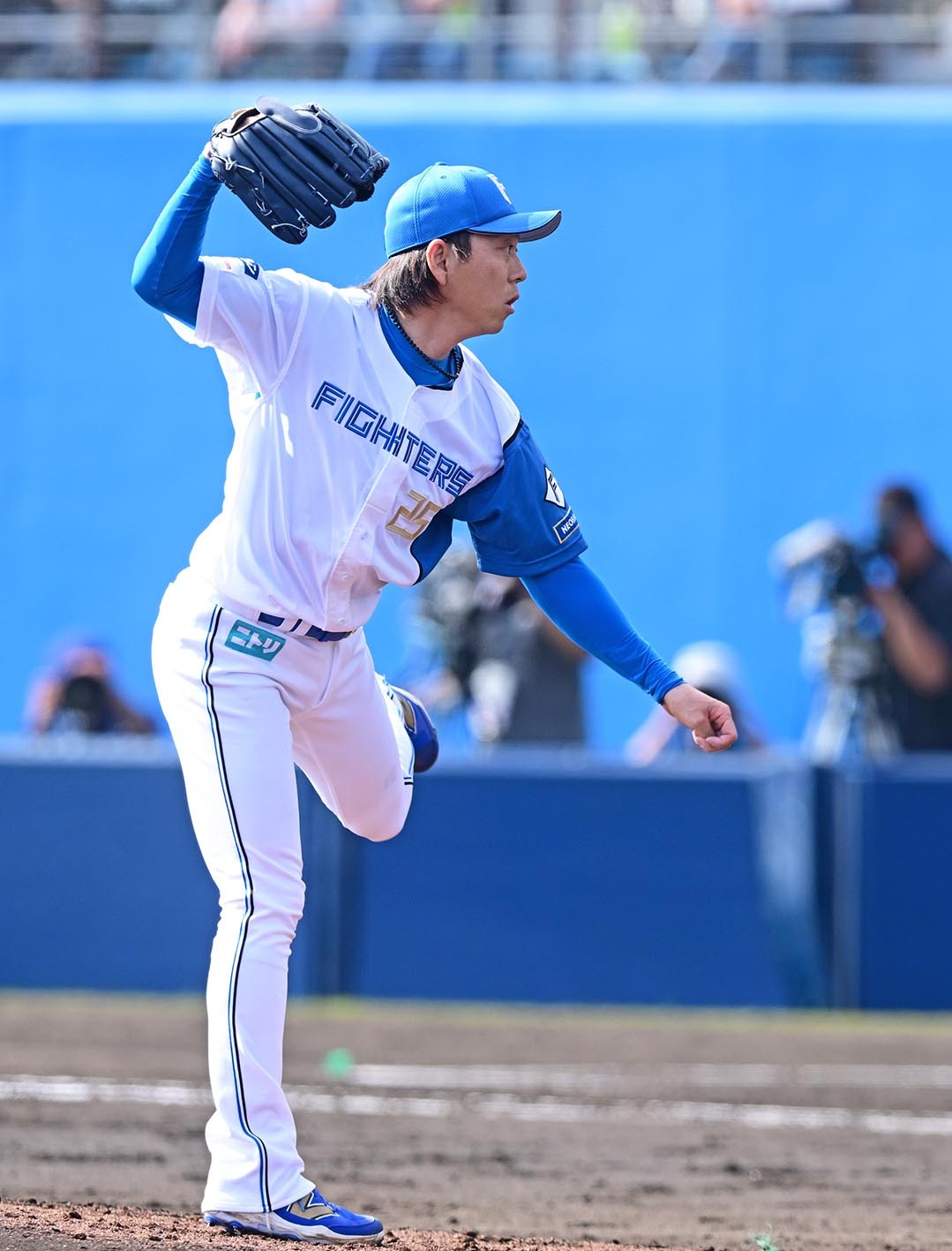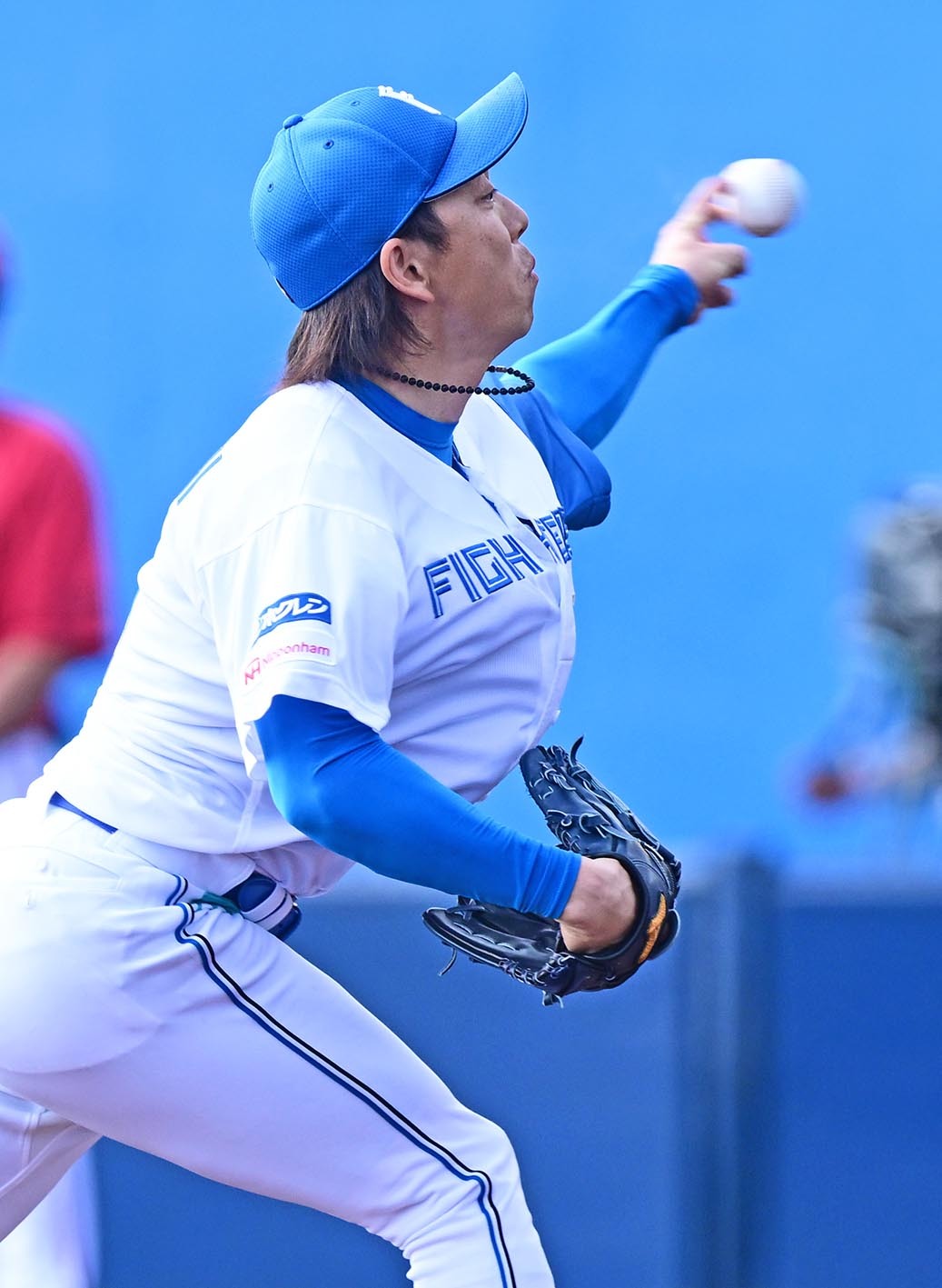 「最後、力勝負をしたいなというところも正直考えていて、頭にあったので、パッとボス(新庄監督)を見たら、チェンジアップというか、スクリュー系、(山本)昌さんの。そっち系で行けという仕草をしていたので、それで結果が出たので、ちょっと笑っちゃいました」