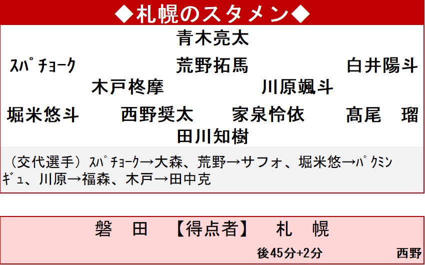 ▽磐田0-1札幌
