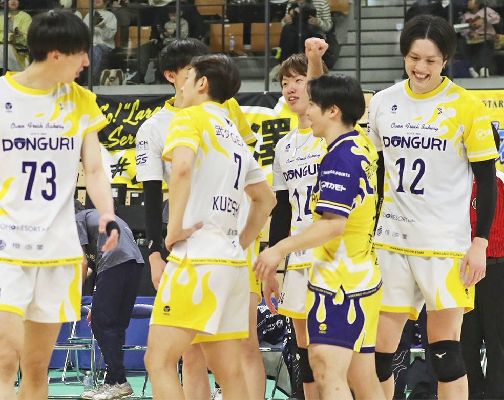 Vリーグ東地区首位の北海道イエロースターズは15日、3-0で4位のつくばユナイテッドサンガイアをストレートで破り、1526人のファンの前で東地区連覇を達成した。