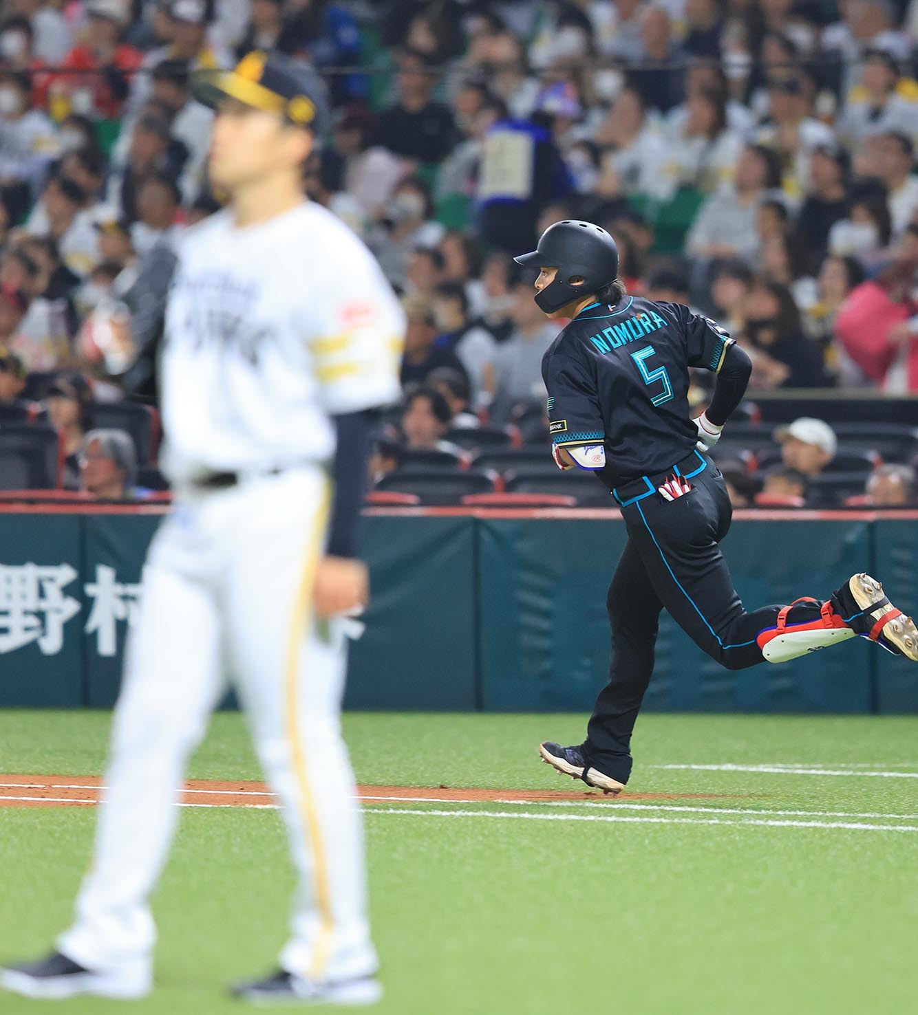 二回2死、ソロ本塁打を放った野村(右)