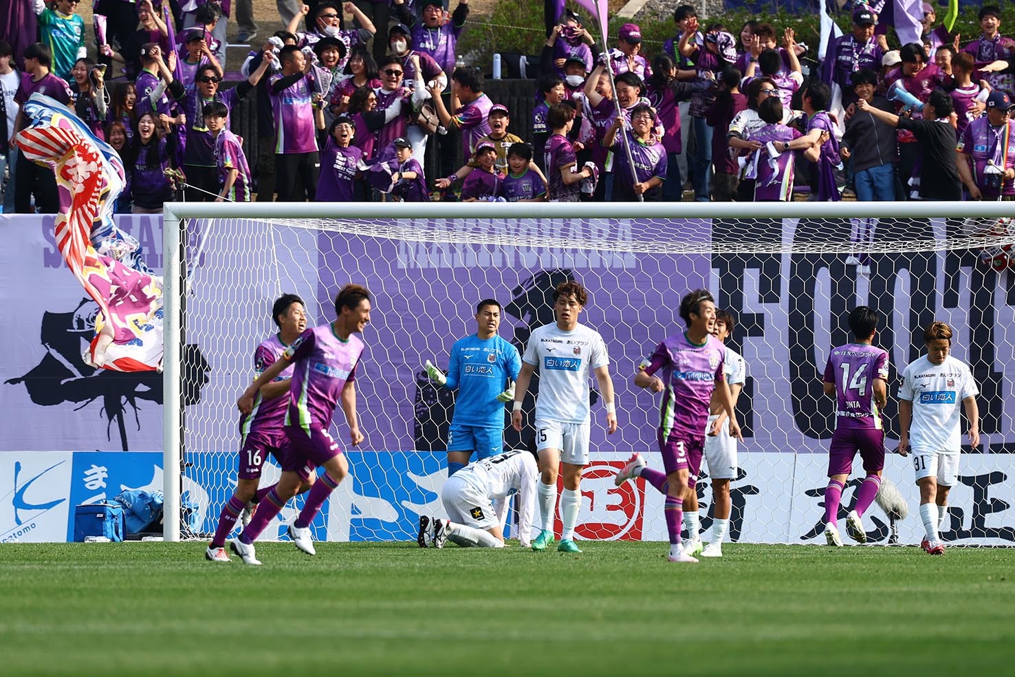 後半22分、藤枝に同点ゴールを決められた札幌の選手たち
