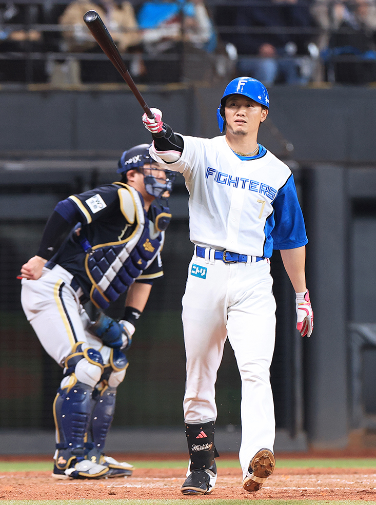 確信歩きに、バットフリップ―。これまでは見られなかった長打仕様の西川遥輝が、そこにいた。2点追う五回1死一、三塁。1ボールからオリックスの先発・九里の変化球をかち上げた。