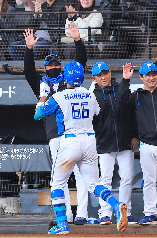 「いい作戦でしたね。山田コーチに感謝。万波くんも調子いいしね。空振りした時、スイングが遅く見えるじゃないですか。でもしっかりバットの重さ、ヘッドの重さを利用して下半身から(力が)伝わってコンタクトする。インパクトの時に。あれが飛ぶんですよ。それが結果につながった」