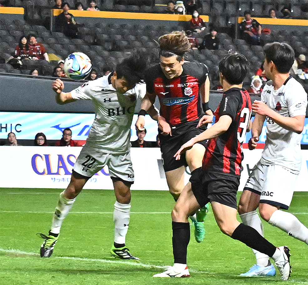 「ずっと札幌に来てから(長谷川)竜也くんとあの形は練習しているし、去年(4月5日ホーム徳島戦での決勝ゴール)もありましたし。竜也くんが入ってきてちょっと話して、ボールに向かって動いてくれというのは言われていたので。完璧なボールを出してくれたので、言った通りのボールと言った通りの入り方でしっかり決められたので。2本目もセットプレーでしたけど、竜也くんのボールとしっかり合わせられてたので、そこはやりやすいというか、すごく良いボールを出してくれたんで。俺じゃなくても多分決められたので、竜也くんのボールが素晴らしかったな、という感じです」