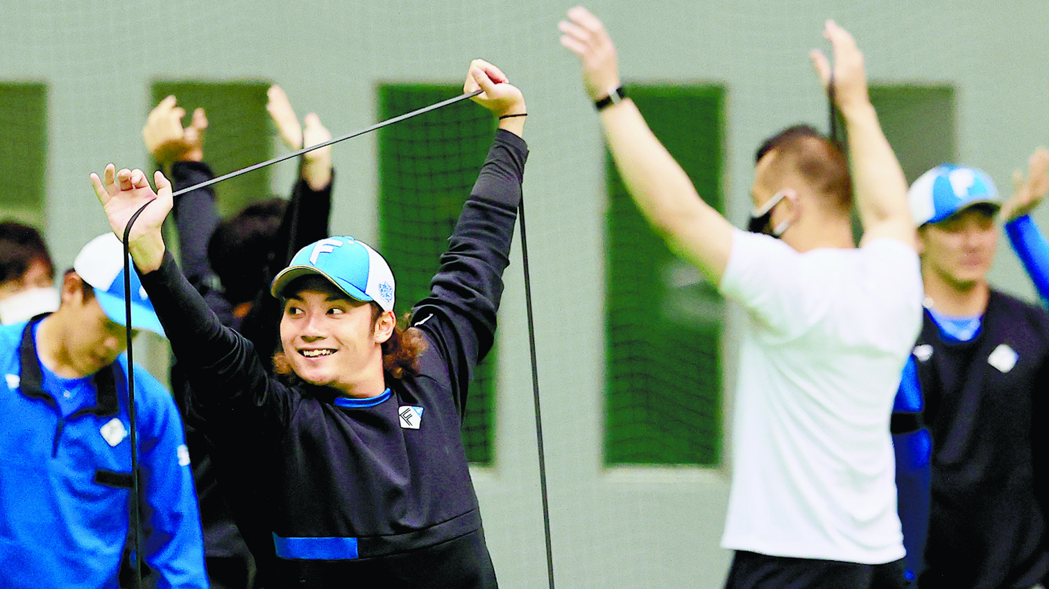 トップアスリートの訪問に、伊藤ら選手たちの目は輝きっぱなしだった。新庄ビッグボスから依頼されて臨時コーチを務めた“鉄人”室伏長官が、日本ハムのユニホームに身を包み「室伏メソッド」を惜しみなく伝授した。