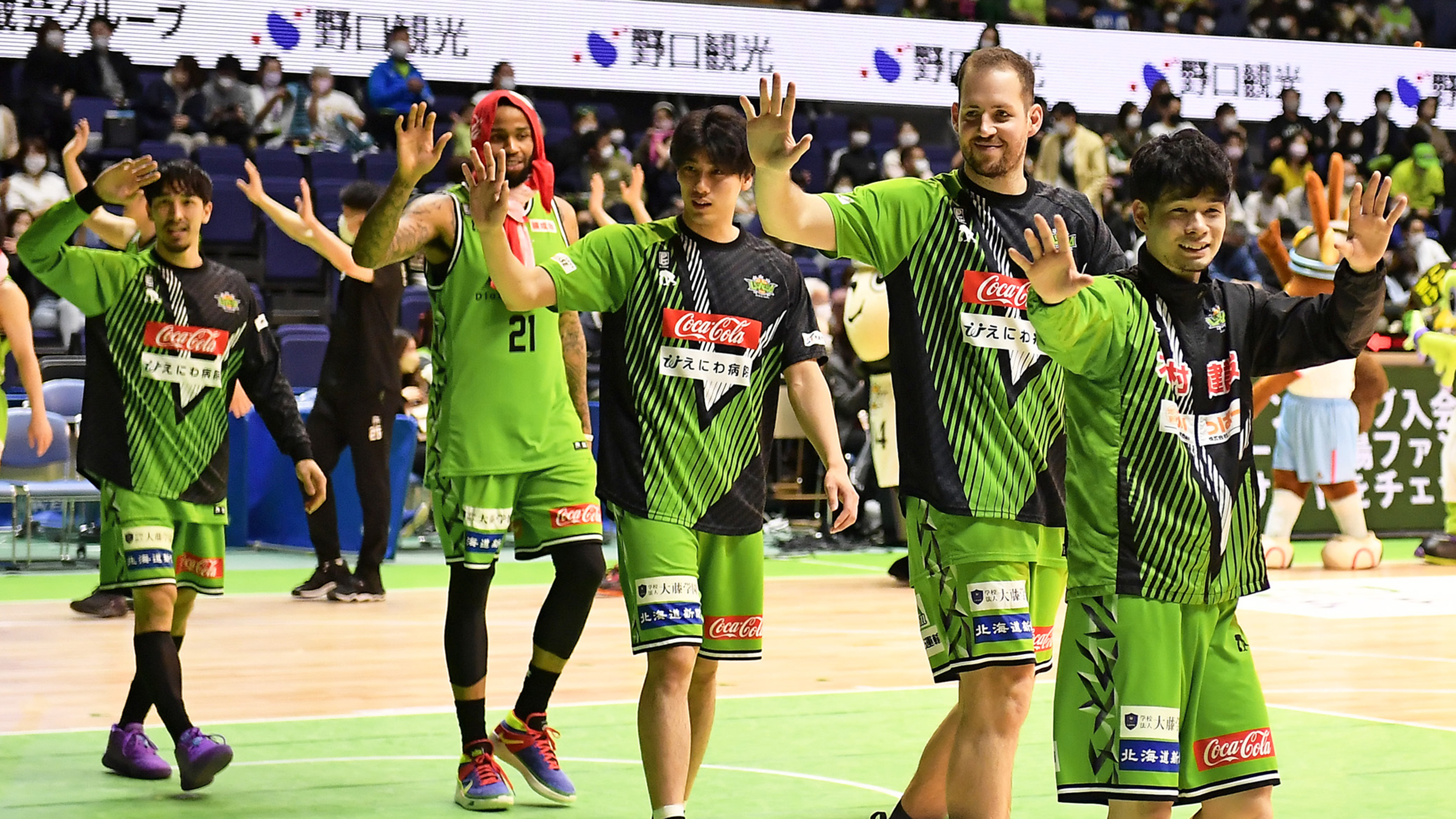 2本の3点シュートを含む14点を挙げたPG寺園脩斗(27)は、自身の背番号4が並ぶ令和4年4月4日に第一子の長女が誕生したばかり。「本当に頑張らなきゃいけない気持ちにさせてくれる」。家族の存在を力に変え、奮闘した。PF/Cショーン・ロング(29)は、この日もチームトップの24得点で快勝に貢献した。