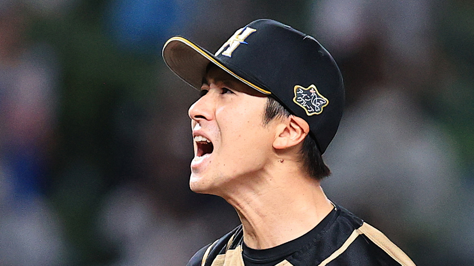 上沢は八回2死一、二塁のピンチを迎えるも、続く源田を空振り三振に斬り雄叫びを上げる