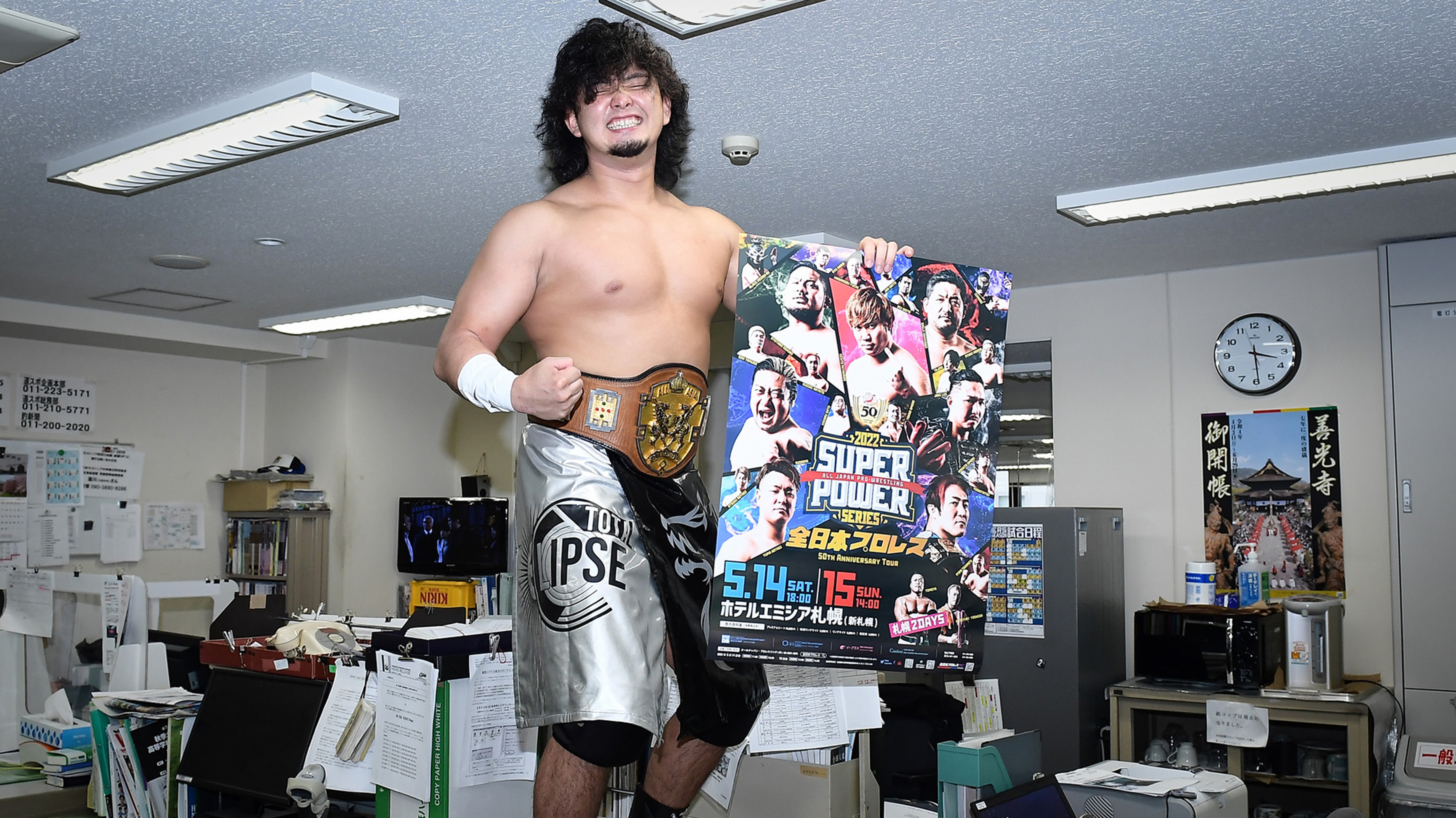 江別市出身のプロレスラー・大森北斗(26)が14、15日に全日本プロレス50周年を記念して行われる「2022スーパーパワーシリーズ」のPRで道新スポーツを訪れた。14日は大森が児玉裕輔(35)と組み、アジアタッグ王者、4度目の防衛戦となる。