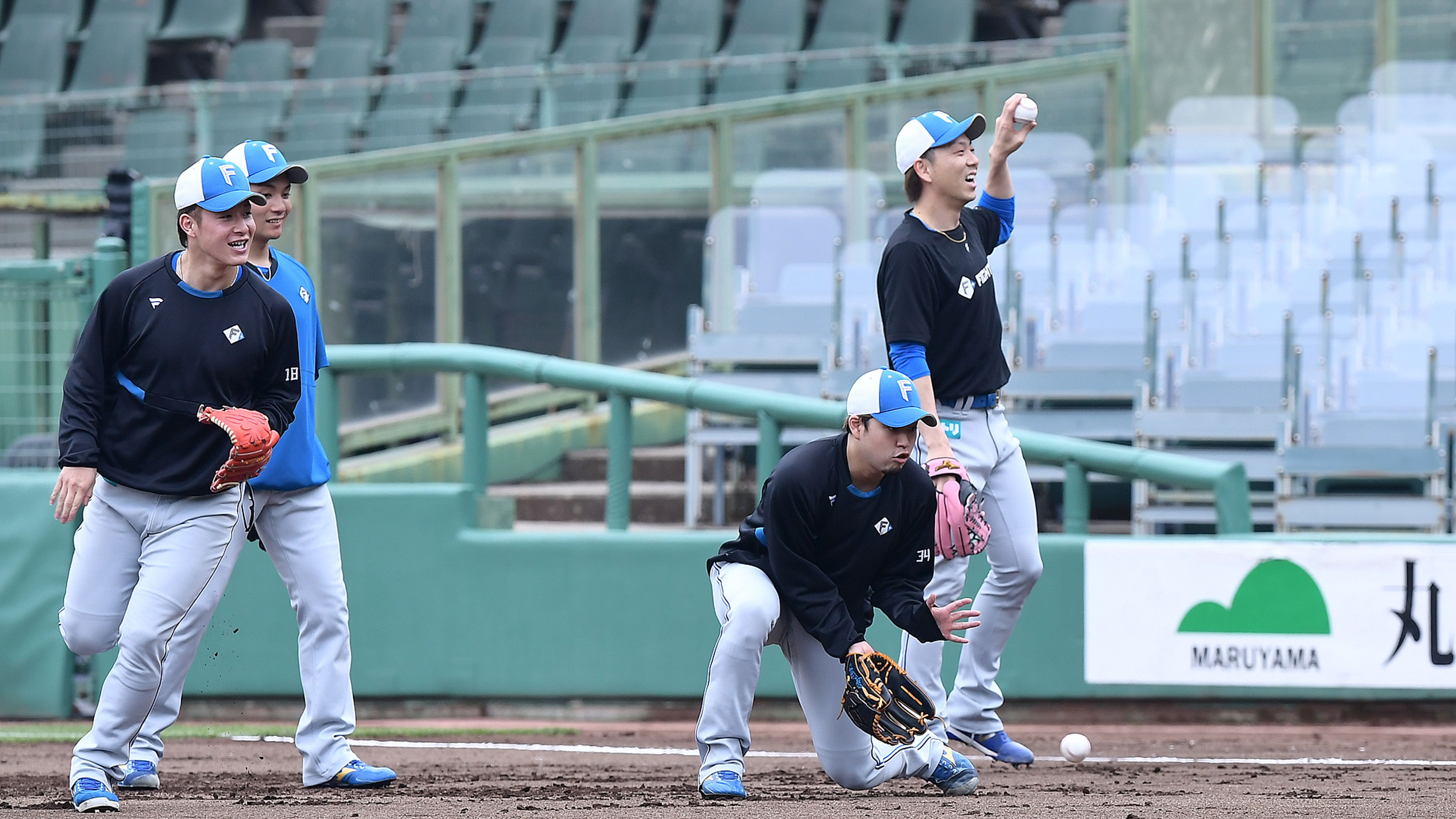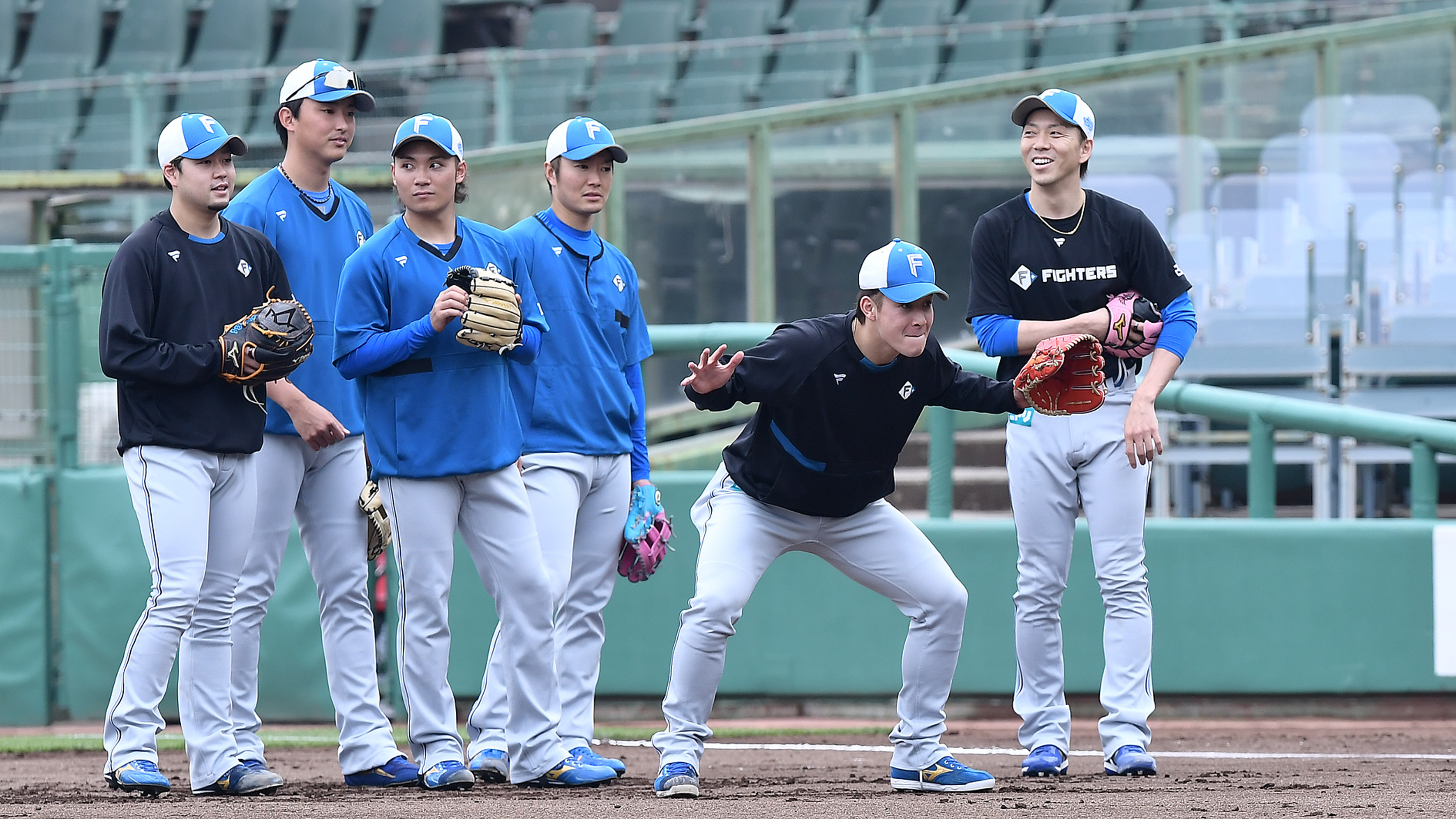 宮西が、大海が、輝星が―投手陣が交流戦へ一塁守備練習