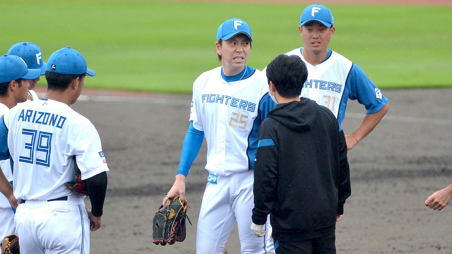 打球を受ける前から、投げ終わりに左足を気にするそぶりがあった。木田2軍監督は「(左足は)滑ったみたい。あした慎重に確認する」と説明した。