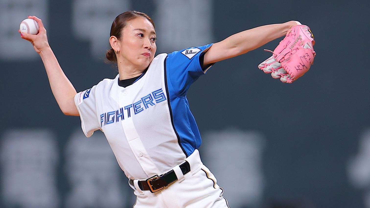 2000年シドニー五輪の競泳400メートルメドレーリレーで銅メダルを獲得した遠軽町出身の田中雅美さん(43)が12日、札幌ドームで行われた日本ハム―中日の始球式に登場した。ファイターズファンでもあり、張り切って10年ぶりの大役に臨んだが、ボールはワンバウンドでミットに収まった。週に一度の投球練習を1年半ほど継続してきたそうで「(成果が)発揮できなかった。悔しい!」と苦笑い。さらに「ビッグボスを見たかったのに、緊張しすぎて忘れてしまった…」と明かし、うちひしがれていた。