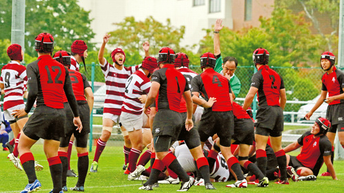 快進撃の中心はナンバー8の工藤だ。中央付近から何度も相手守備陣を突破。178センチ、69キロと細身だが「止まってプレーしちゃうと体重負けするので」と、自分から相手に向かっていって体を当てにいき、3トライをマーク。「すごくうれしいです」と笑みを浮かべた。