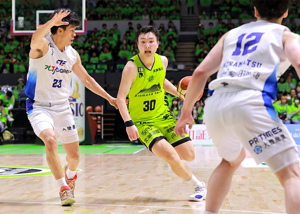 新生レバンガが躍動した。第2クオーター(Q)中盤に勝ち越して以降は一度もリードを許さず、危なげない試合運びを展開。第3Q序盤には連続12得点で三遠を突き放し、ホーム“開幕戦”をものにした。