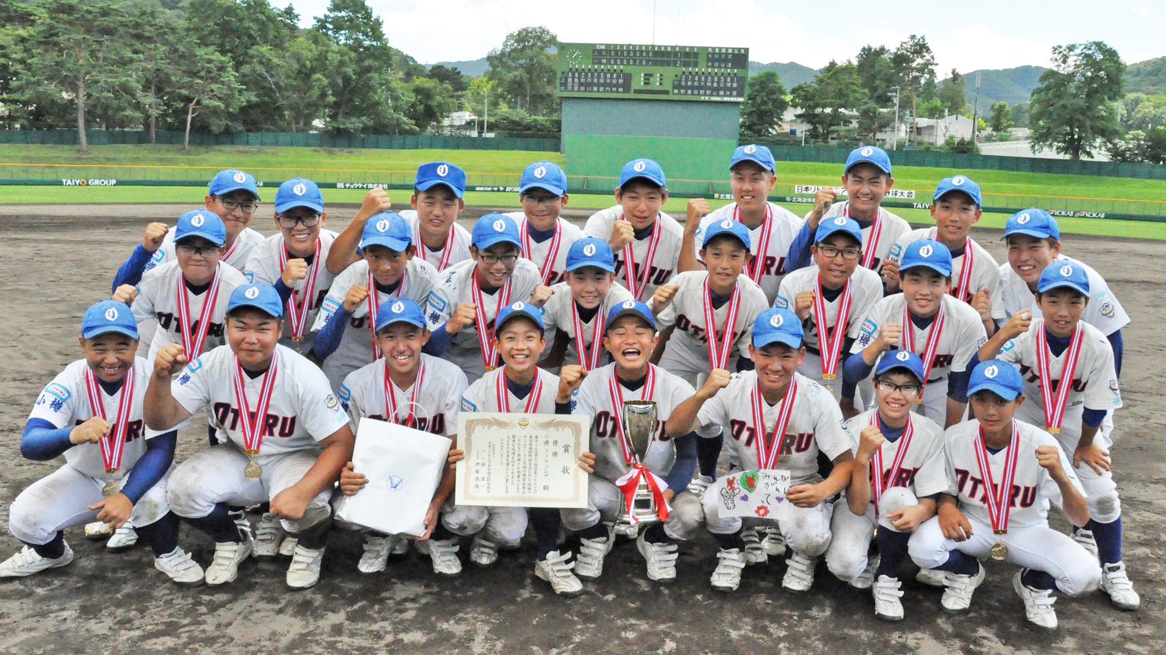 5年ぶりの札幌開催。決勝が行われ、初出場の小樽が上北さくら(東北連盟)を2―1で下して初優勝。エース敦賀那佑汰(樽潮見台中3年)が6回を4安打1失点に封じた。道内勢の優勝は昨年の日高に続き、2年連続3チーム目。