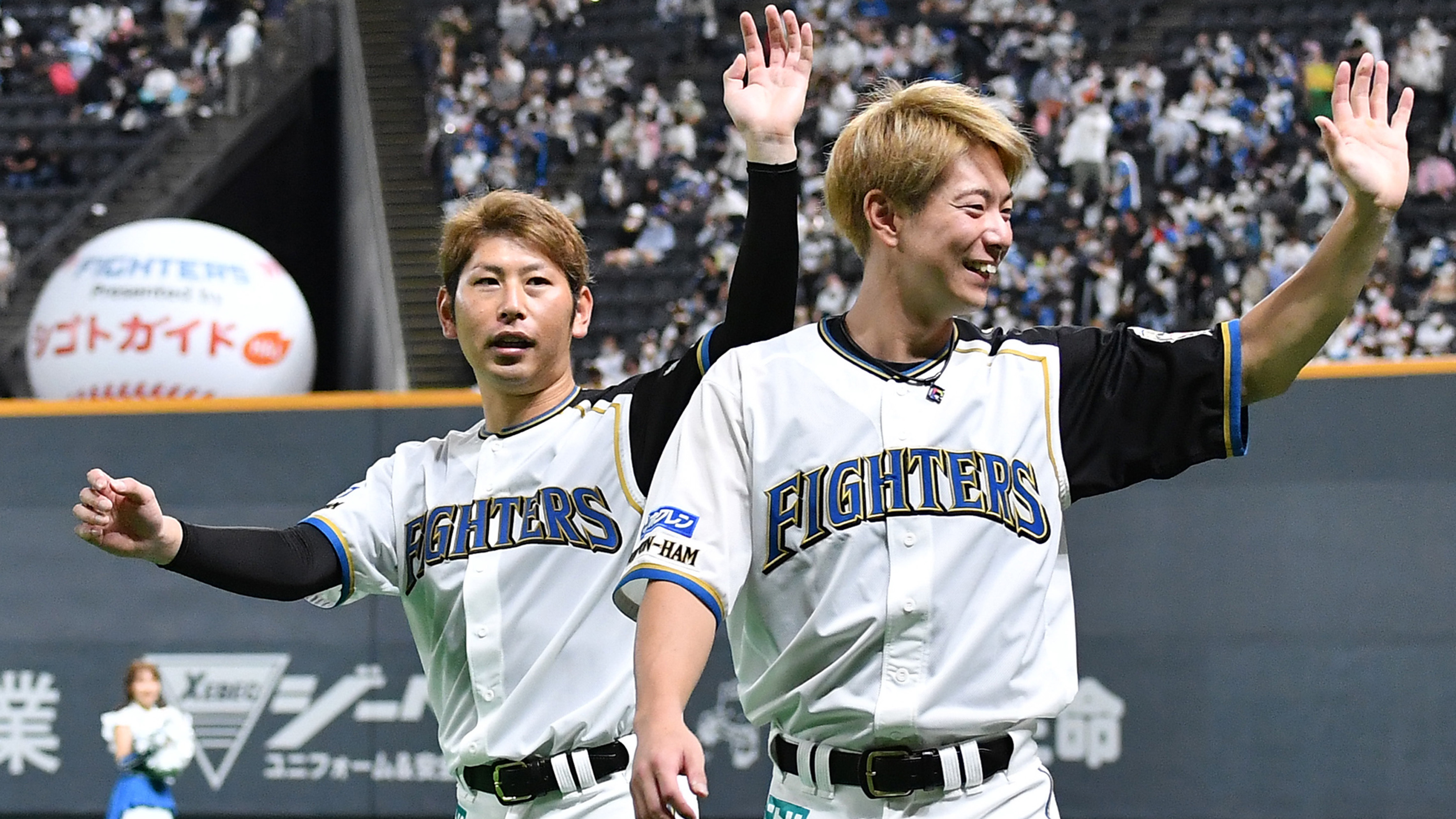 試合前には「きつねダンス」の原曲「The Fox」を歌うノルウェー出身のコメディアン「Ylvis(イルヴィス)」が生歌を披露。松本剛はファーストピッチで捕手役を務め、「だいぶ前から依頼を受けていたので張り切っていました」と気合十分だった。