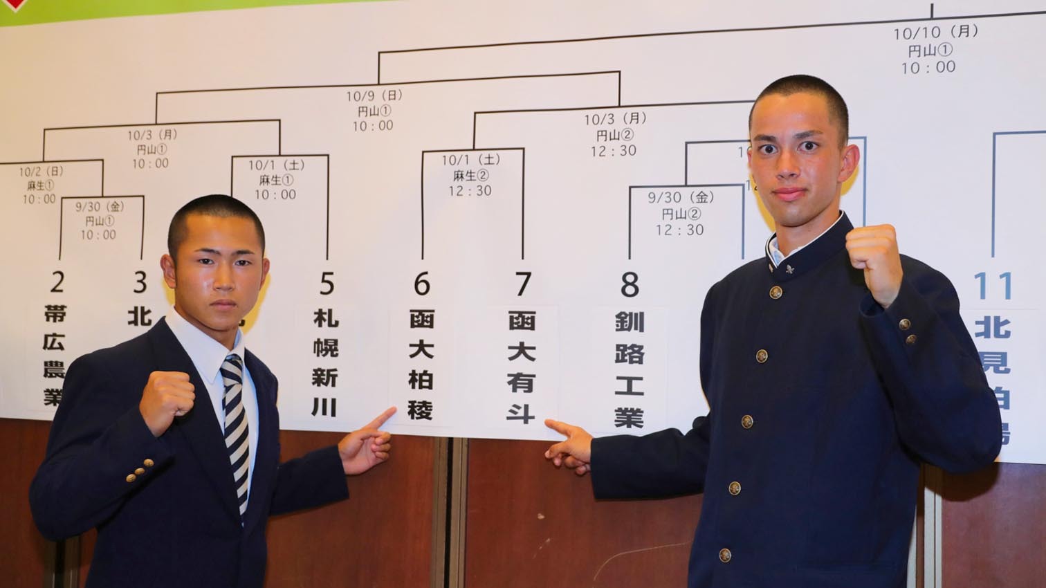 30日から開幕する第75回秋季全道高校野球の組み合わせ抽選が21日、札幌市内で行われた。春、夏、秋を含めて道大会では初となる函大有斗と函大柏稜の兄弟校対決が1日の2回戦(札幌麻生)で実現した。古豪復活を目指す有斗と秋の全道初勝利を目指す柏稜が〝骨肉の争い〟に臨む。