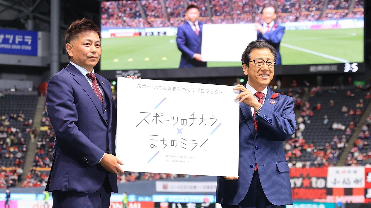 8日・福岡戦の試合開始前、ピッチ上で三上取締役GMと秋元札幌市長が「スポーツによるまちづくり」応援宣言を行った。三上GMは「私たちはサッカー、スポーツを通して北海道、札幌市、そこに関わる人たちを豊かにする、元気にすることを事業の目的としています。このプロジェクトを道内企業、サポーターの皆さまと協力し、コンサドーレがハブとなって推進していきたい。ぜひ皆さまの力をお貸しください」と呼びかけた。