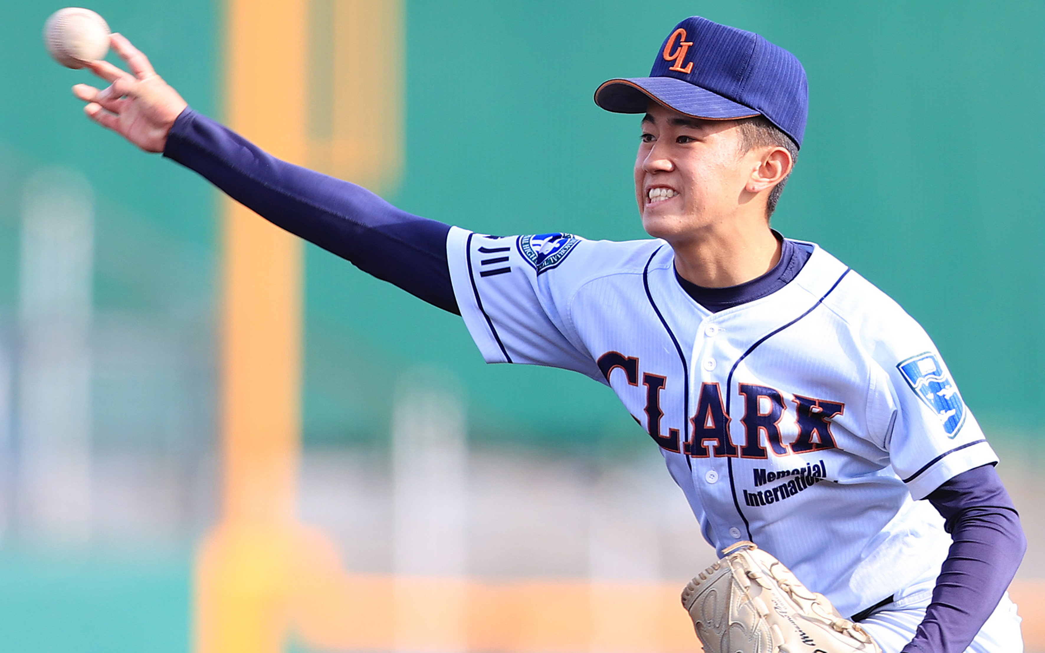 クラークの大黒柱・新岡が、会心の投球で立命館慶祥打線をわずか2安打に抑え、2年連続で決勝へと名乗りを上げた。「投手でもうまく自分のスタイルで打ち取れた」。全道大会3試合を全て1人で投げ抜き、支部大会から続く自責0を38回に伸ばした。