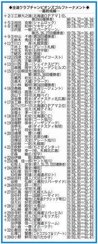 ▽道新スポーツ杯全道クラブチャンピオンズゴルフトーナメント最終日 (14日、北広島・札幌リージェントゴルフ倶楽部旧コース、6865ヤード、パー72)