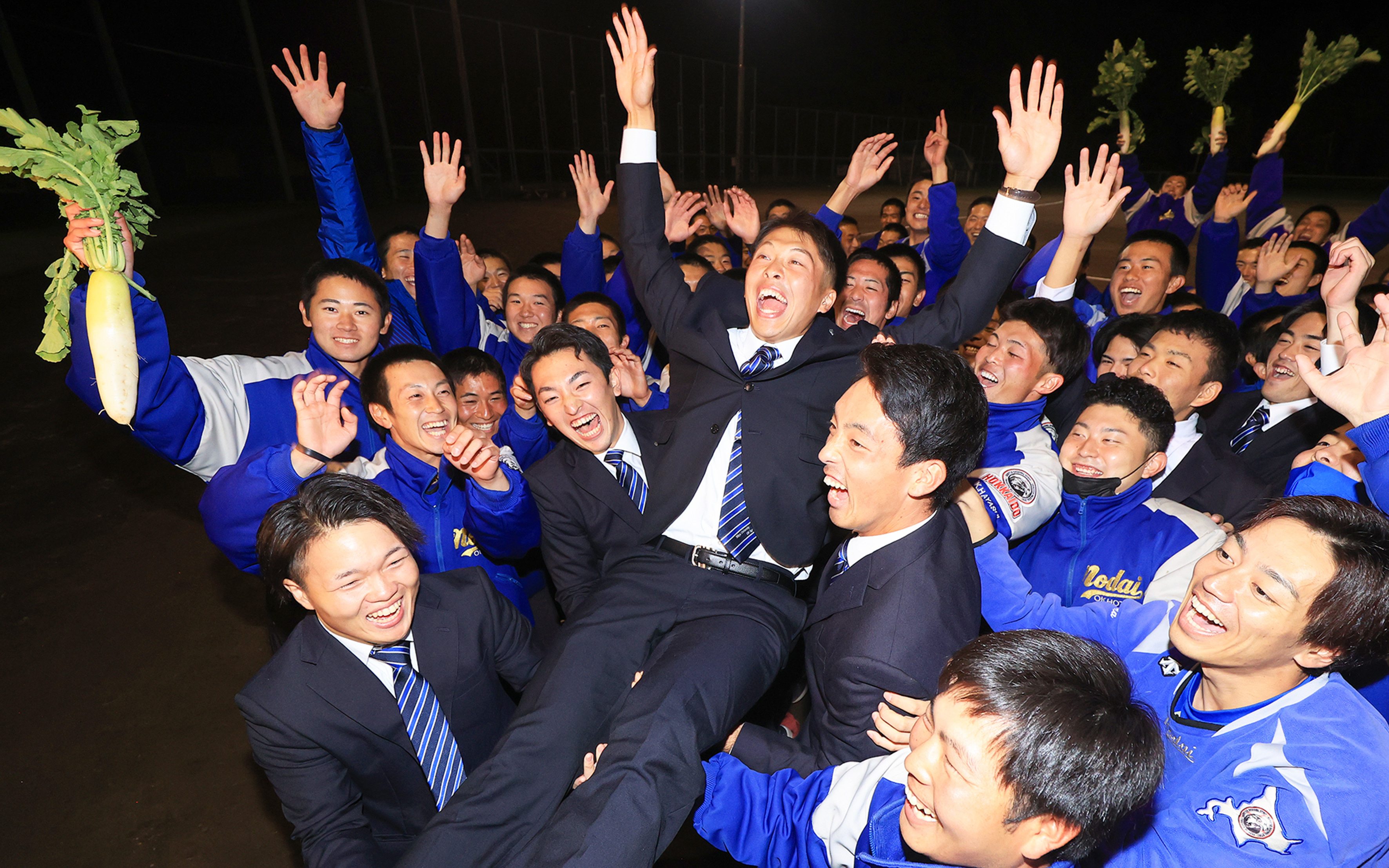 地元・東北の球団から指名を受けた福島県出身の伊藤茉央投手は、「楽天は地域全体から愛されているイメージ」と笑みがこぼれた。憧れは北海道からプロへ巣立ち、チームの顔となった田中将大だ。「自信を持って(打者に)立ち向かいたい」と意気込む。変則の横手投げ右腕として東農大網走で4季連続Vに貢献した。最速148キロの直球、スライダー、カーブ、シンカーなど6つの球種を操る右腕はプロの世界でも主役を目指す。