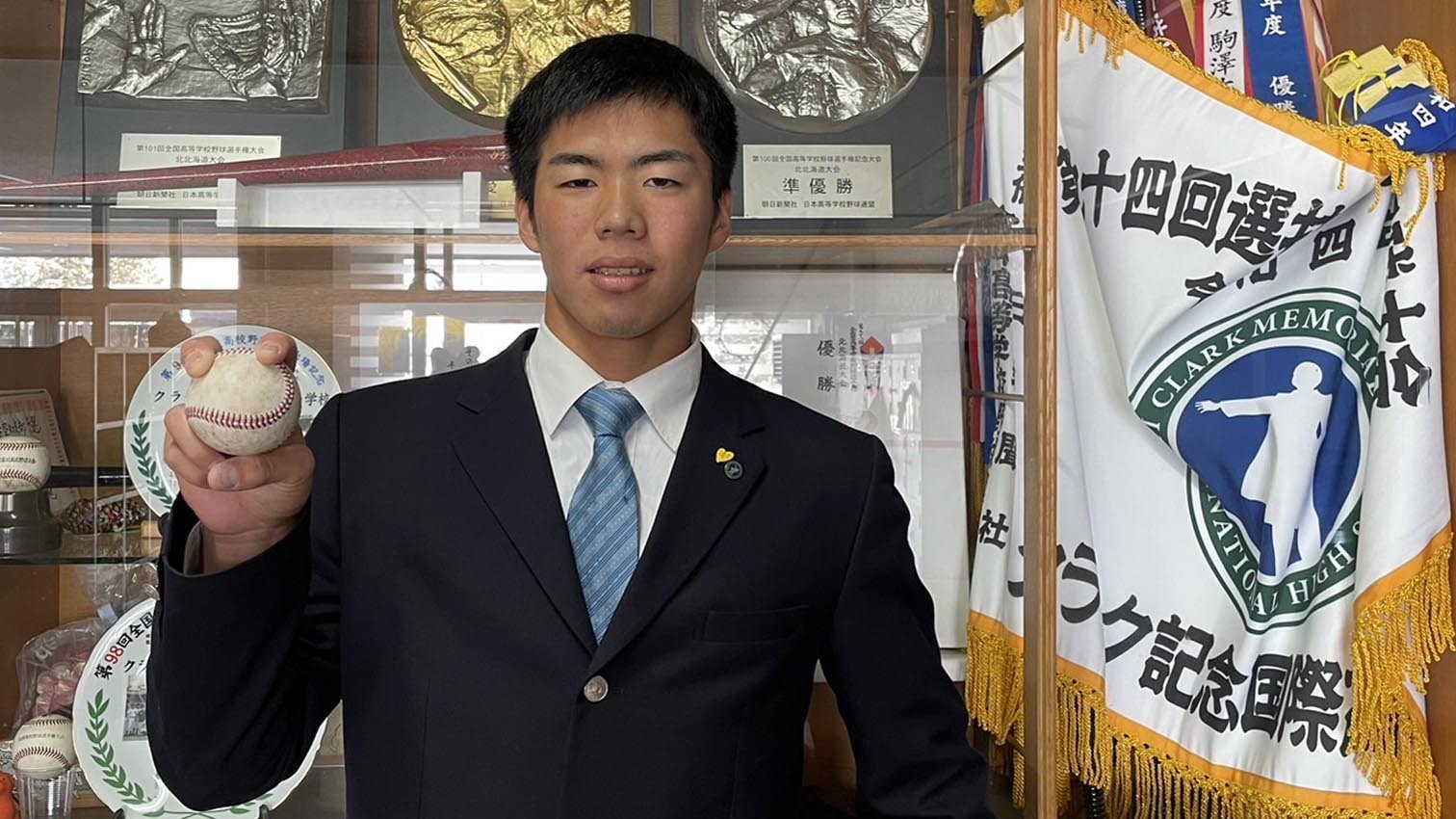 高校では道内屈指の実力を誇っていただけに、プロ志望届を出す選択肢もあったが、春の甲子園後に左膝を疲労骨折したことで進路を大学進学へと切り替えた。「もっと鍛えて、圧倒的な成績を残してからプロ野球選手になった方が自分のためになる」。その分、目標は明確だ。「大学4年間で日本一になって、そこで負けないピッチャーになって、ドラフト1位で行けるように頑張っていきたい」と意気込んだ。