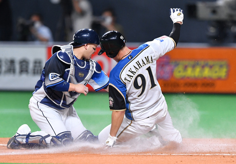 「5番・一塁」で先発した高浜は2試合連続の適時打をマークした。2点ビハインドの七回、2死二塁の好機で中前に運び、1点差に詰め寄った。「何とか1点欲しい場面。つなぐ気持ちで打ちました」。直後に浅間の右中間への二塁打で一塁から一気に生還を狙うも本塁で憤死。「足が遅くて申し訳ないです」と謝罪したが、好打と激走でチームに勢いをもたらした。(札幌ドーム)
