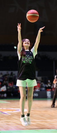 試合前にはバスケット経験者でもある金川がフリースローチャレンジに挑んだ。放ったシュートがリングに弾かれ失敗となったものの、金川は〝泣きの1回〟を懇願。急きょ「決めるまで」というルールに変更した結果、4本目で見事に成功を収めた。