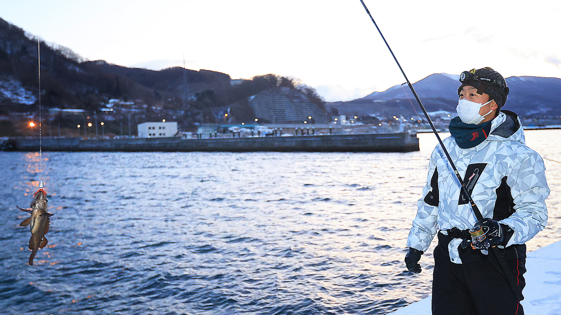 大寒波が日本列島を襲った12月19日。世界中がワールドカップ決勝の熱狂に包まれた深夜に、鶴岡さんは車を走らせた。目的地は虻田郡洞爺湖町。噴火湾のカジカとアブラコに狙いを定め、極寒の海へと向かった。午前3時30分。氷点下7℃の真っ暗な漁港に到着し「やばっ! 寒っ!」と第一声。それでも笑顔を浮かべるのは、生粋の釣り人だからであろうか。