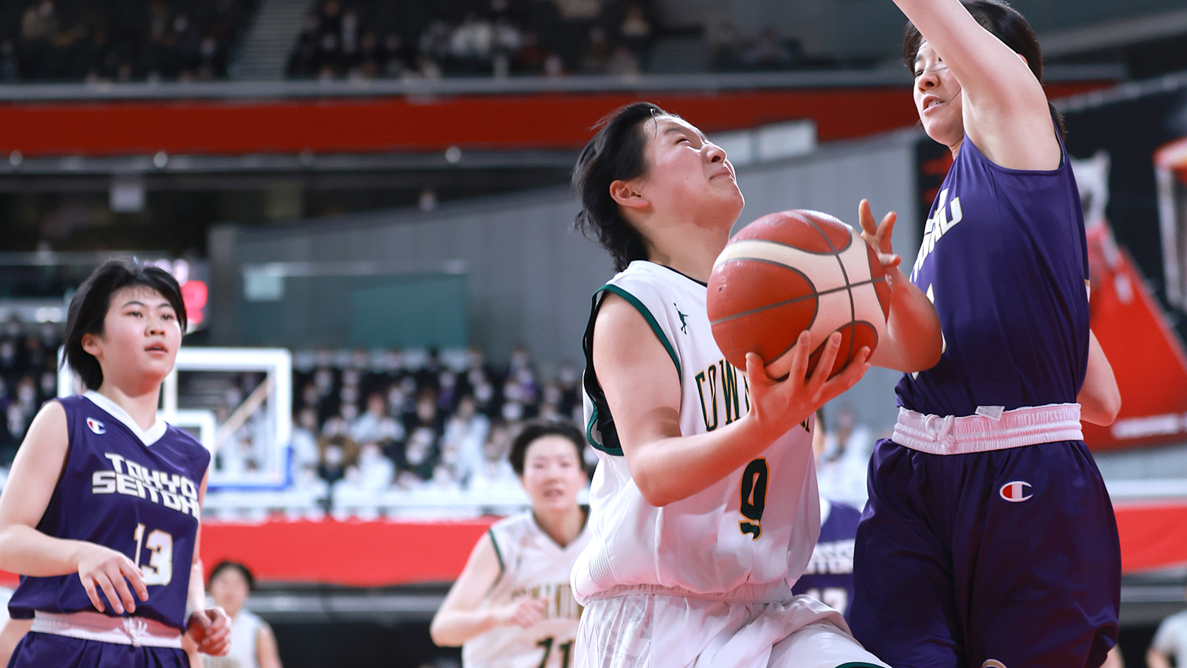 女子1回戦が行われ、3年ぶり2度目出場のとわの森三愛は、64―90で東京成徳大高(東京)に敗れた。序盤、硬さから0―10と出遅れたが、前半を10点のビハインドで折り返した。第3クオーター(Q)になると、相手の高いショット成功率に次第に引き離され、初の全国1勝はお預けとなった。一時30点以上離されたが、オールラウンダーの西野綾姫(3年)が両チーム最多の20得点をマークするなど、42度目出場の強豪相手に存在感を示した。