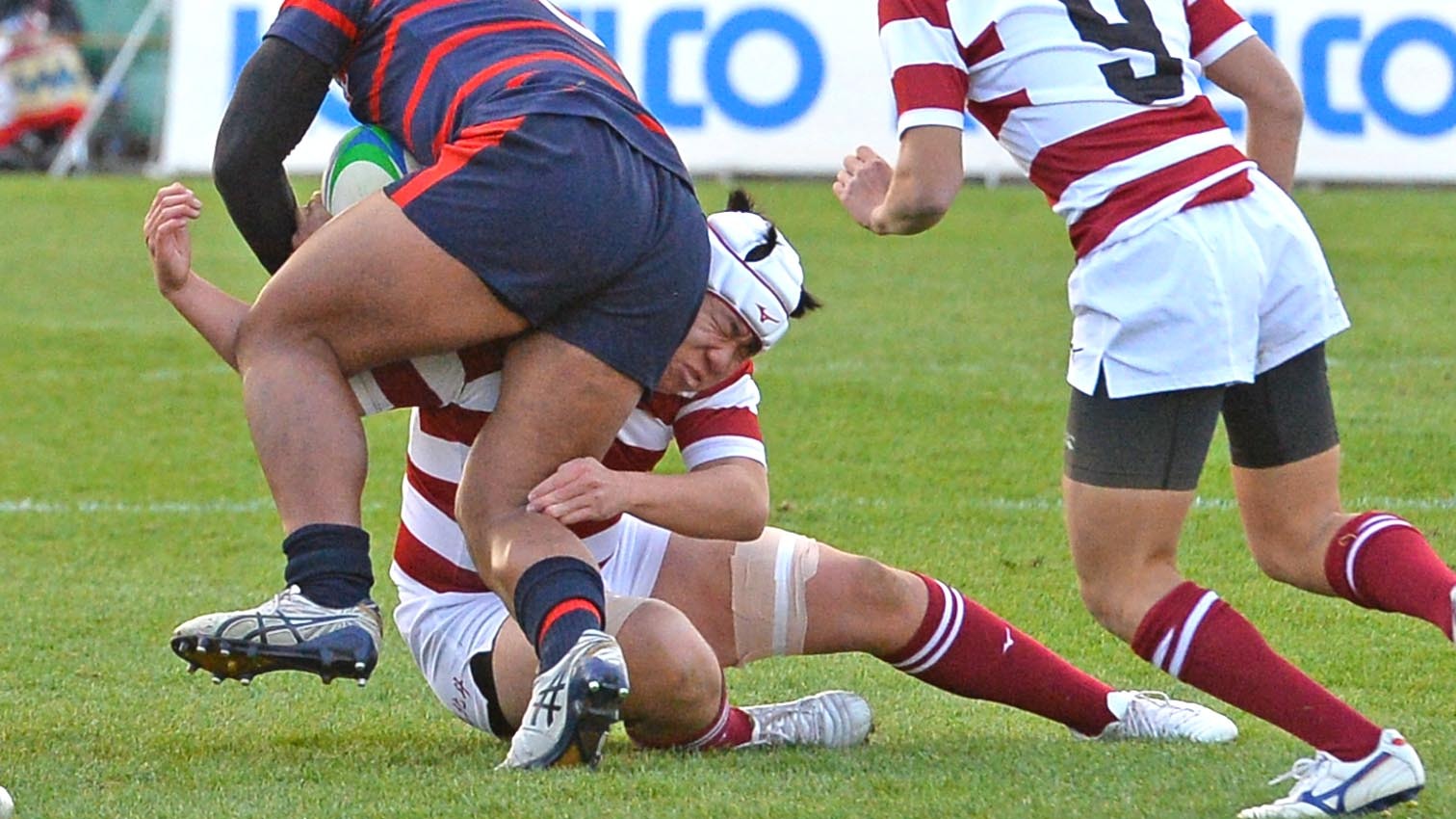 しかし後半に入ると、日本航空石川に立て続けに4つのトライと2本のコンバージョンを決められ、3-29と突き放された。27分、ゴールラインまであとわずかのところで得たペナルティーから連続攻撃を仕掛け、最後はCTB藤枝航史(3年)がトライ。コンバージョンも決めて10-29と食い下がった。